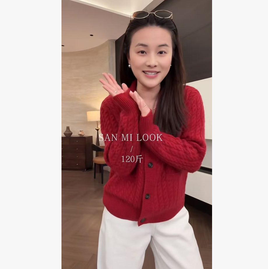 翻领麻花针织开衫 流金老钱 55122 叁米 SANMI