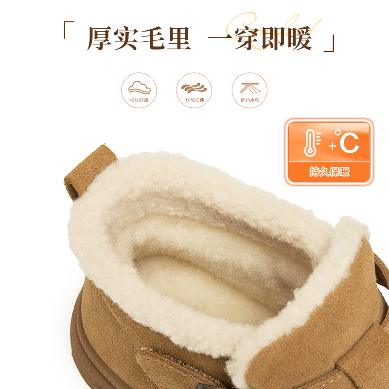 百丽复古皮带扣雪地靴女2025冬新商场同款 厚底加保暖短靴