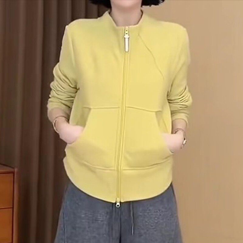 女装 胖MM大码 宽松显瘦休闲上衣 立领双拉链卫衣外套女秋冬新款 韩版