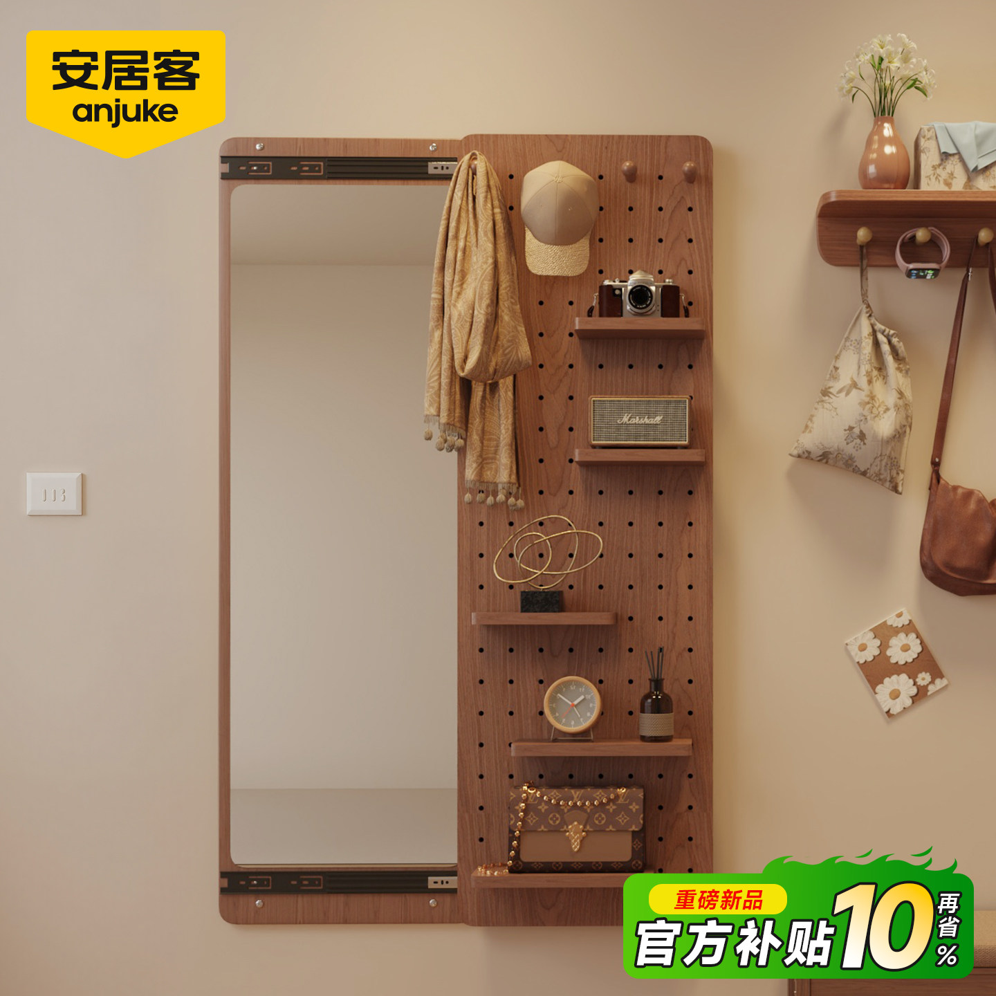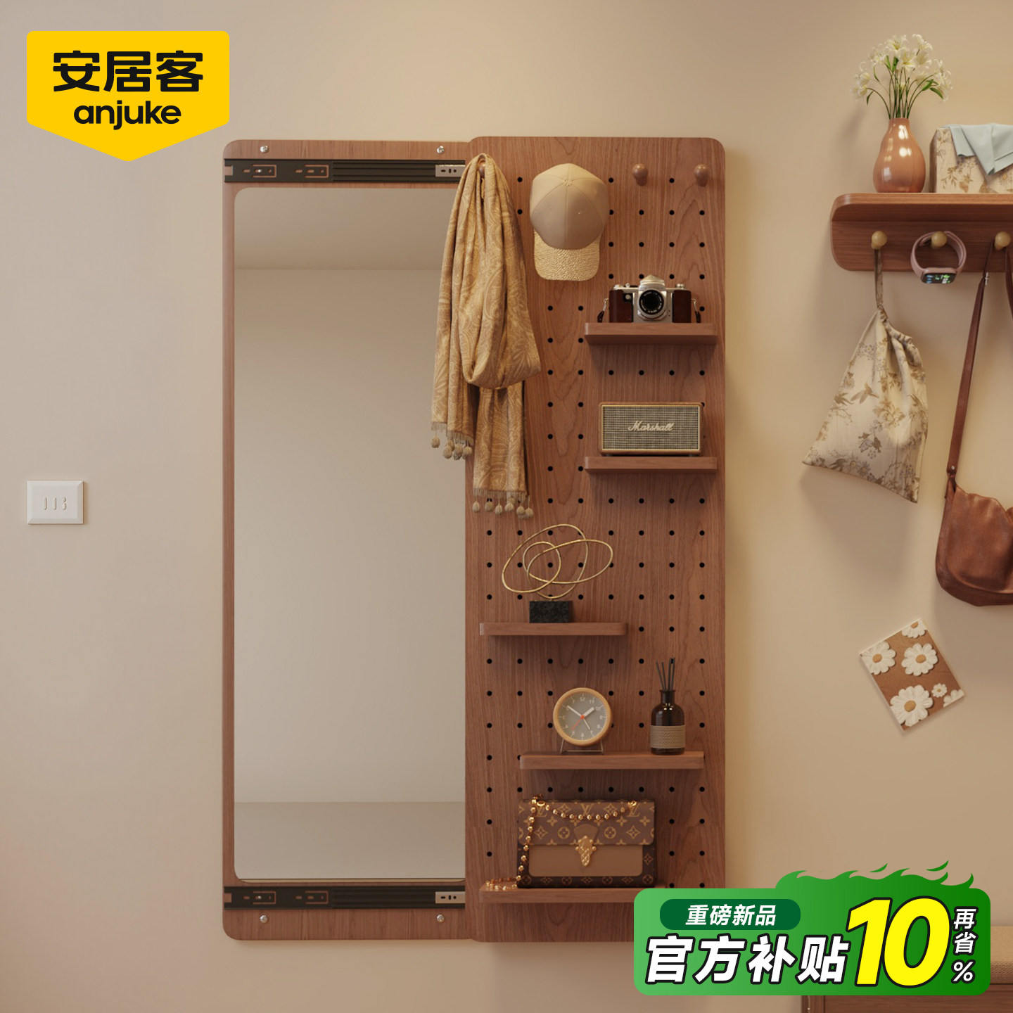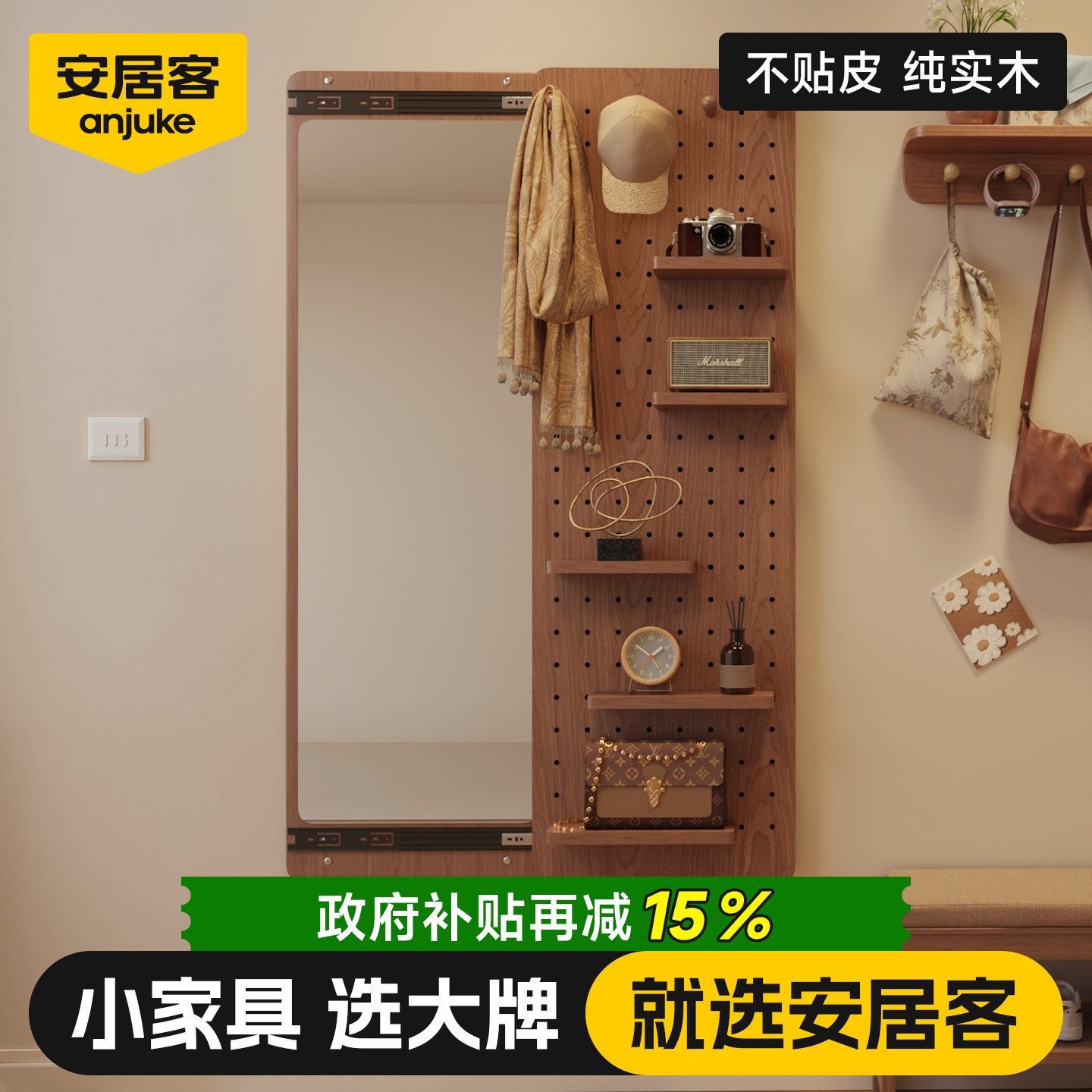 BOLEN 店试衣镜挂墙镜 北欧穿衣镜全身镜子贴墙家用卧室落地镜服装