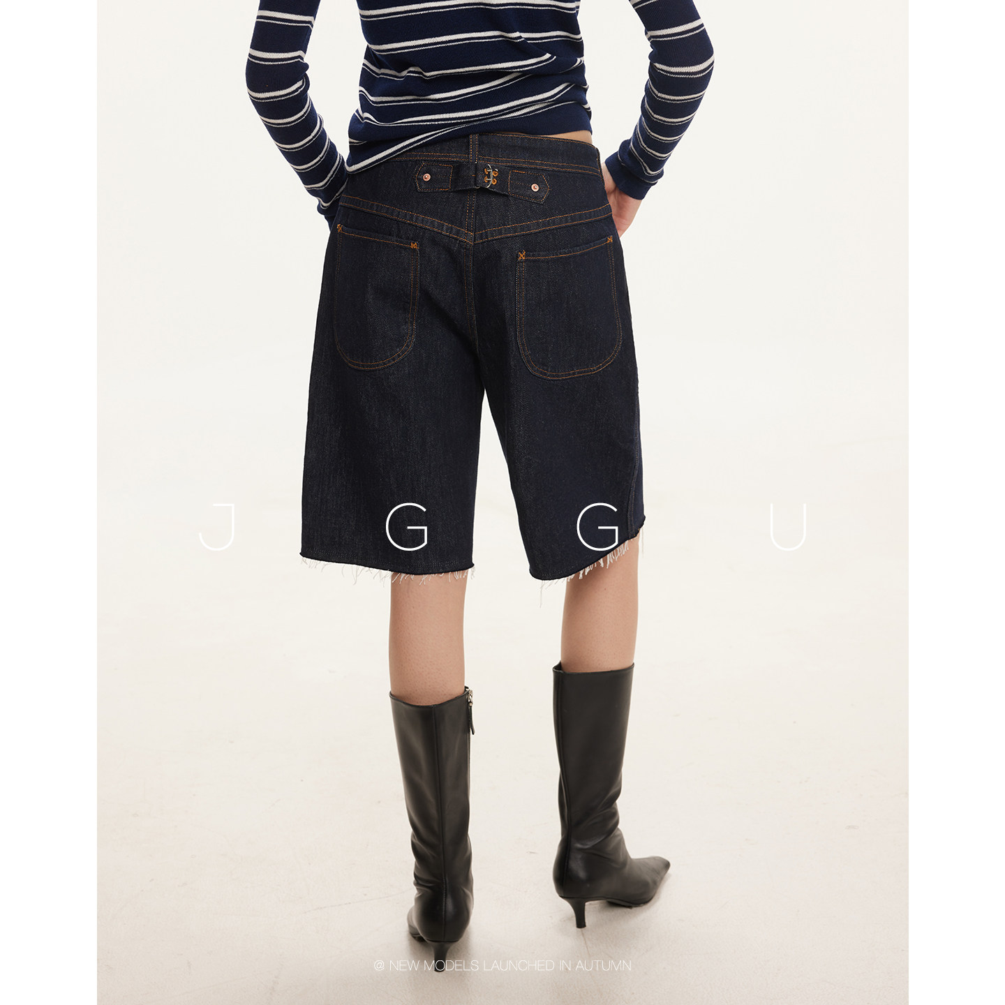 子女秋季 复古原色水洗显瘦牛仔五分裤 旷野浪人 晶咕黑标JGGU