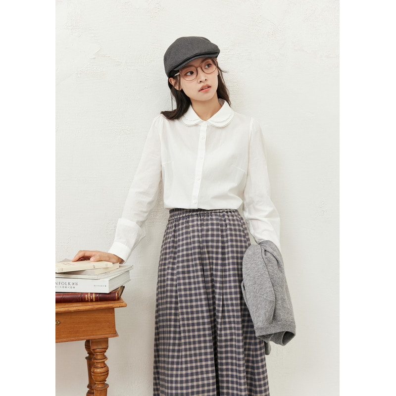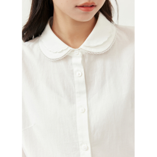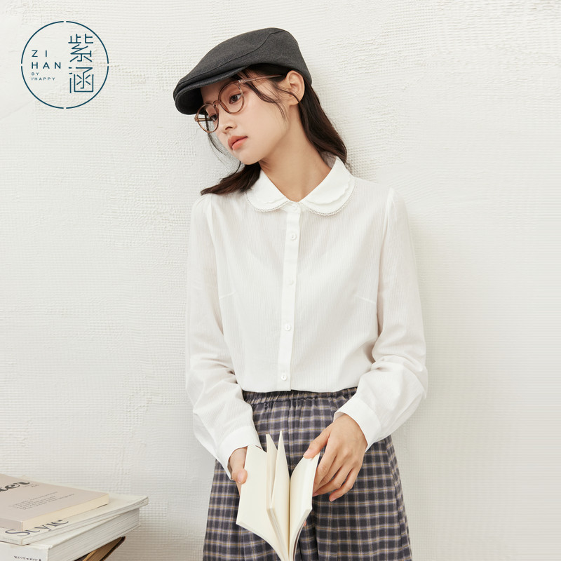 简约设计感宽松休闲时尚 紫涵白色长袖 新款 女秋季 百搭纯棉衬衣 衬衫