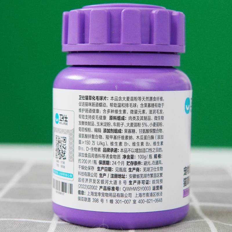 卫仕化毛球片100g 瓶幼猫成猫咪用品去毛球促消化调理营养补充剂