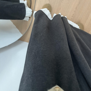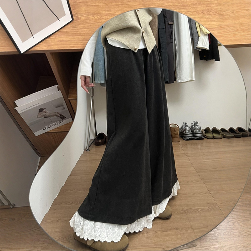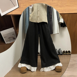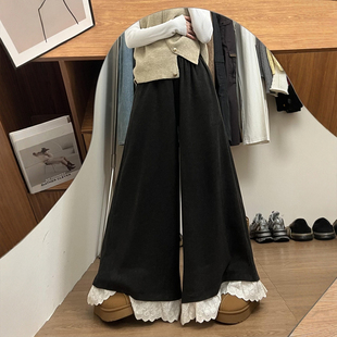 子 胖mm休闲a字半身长裙裤 深灰色蕾丝花边拼接阔腿裤 裙女秋冬大码
