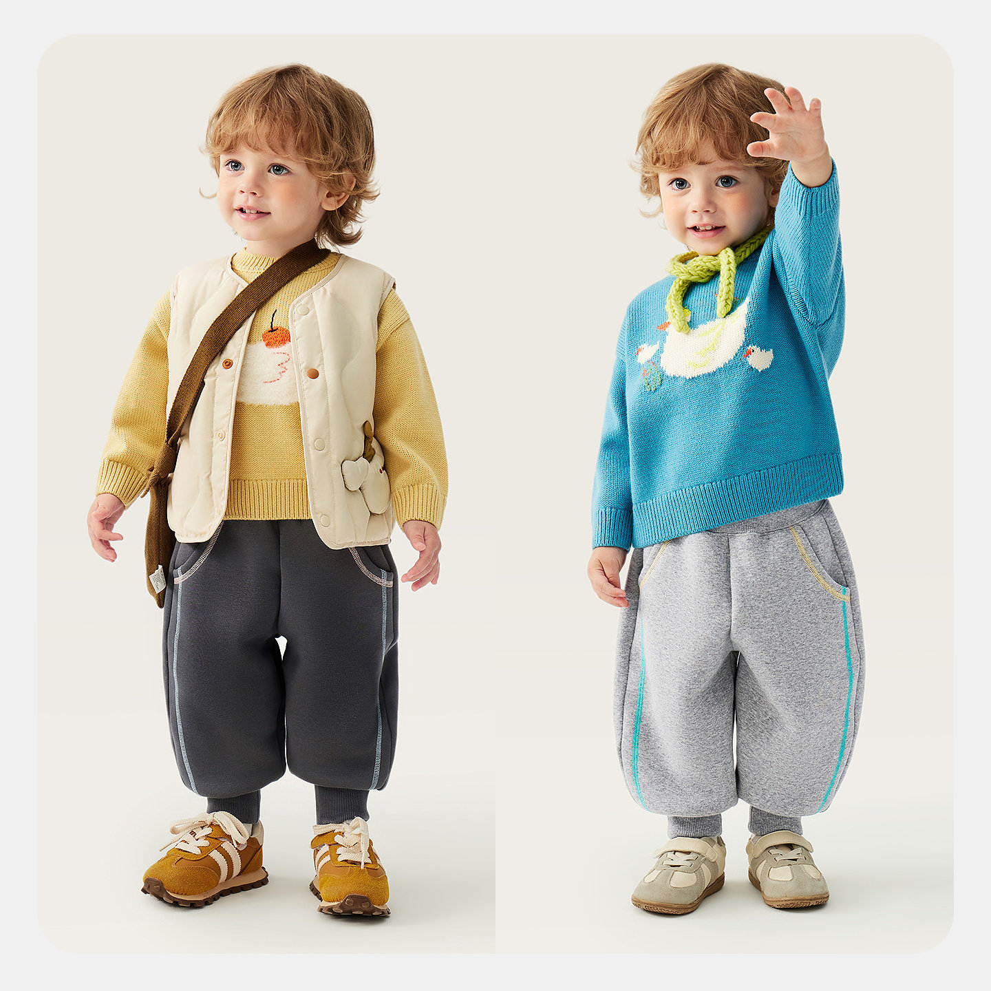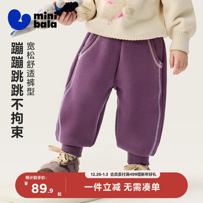 子2025冬新款 迷你巴拉男女童宝宝长裤 柔软亲肤保暖内里加绒舒适裤
