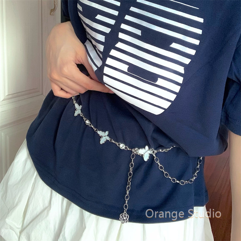 古早感辣妹蝴蝶腰链甜酷y2k亚文化长款 金属链条腰带ins风简约配饰