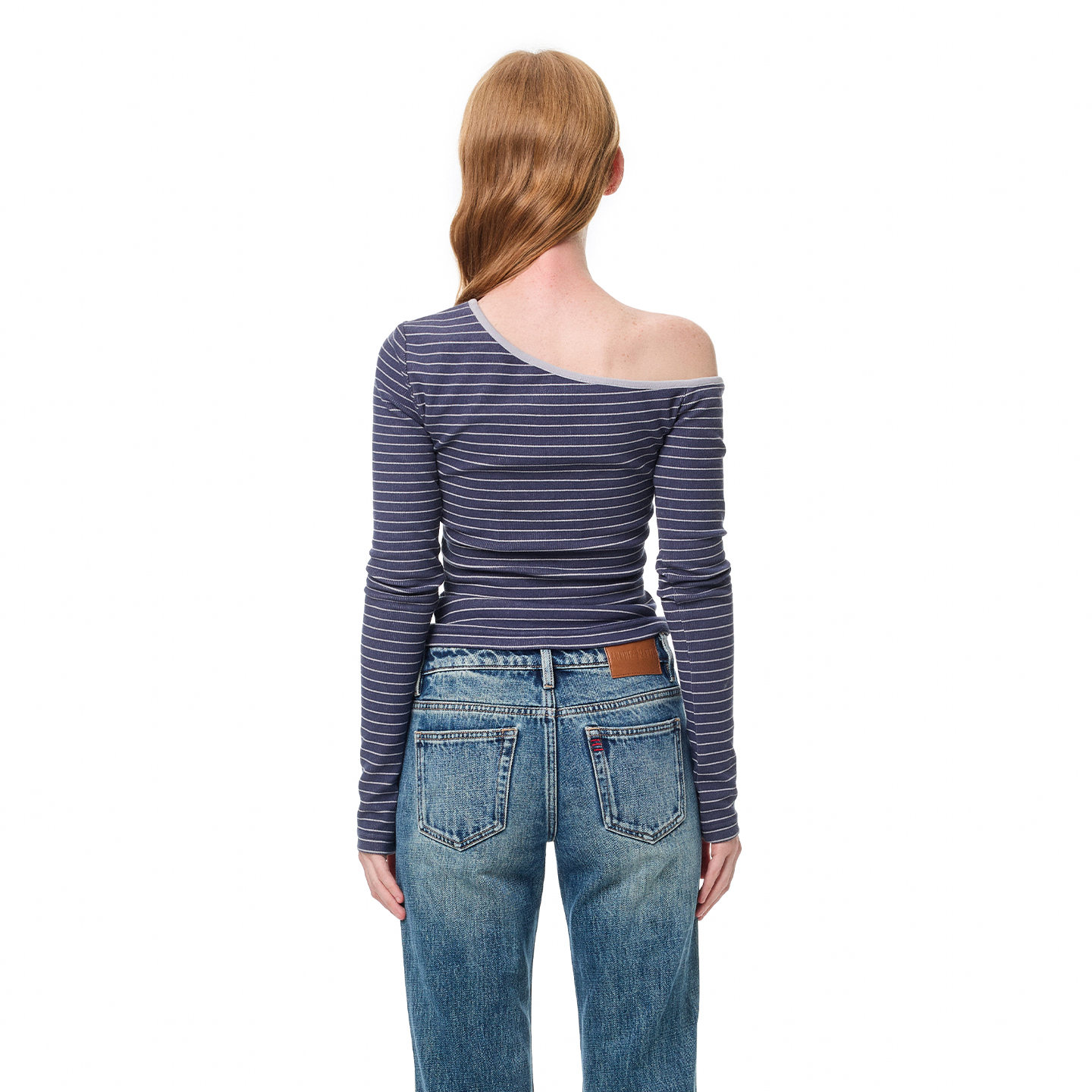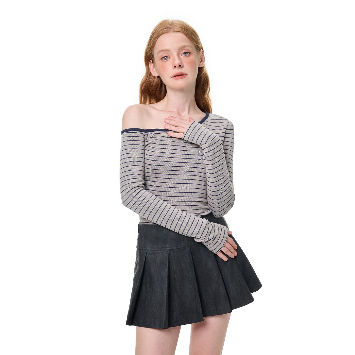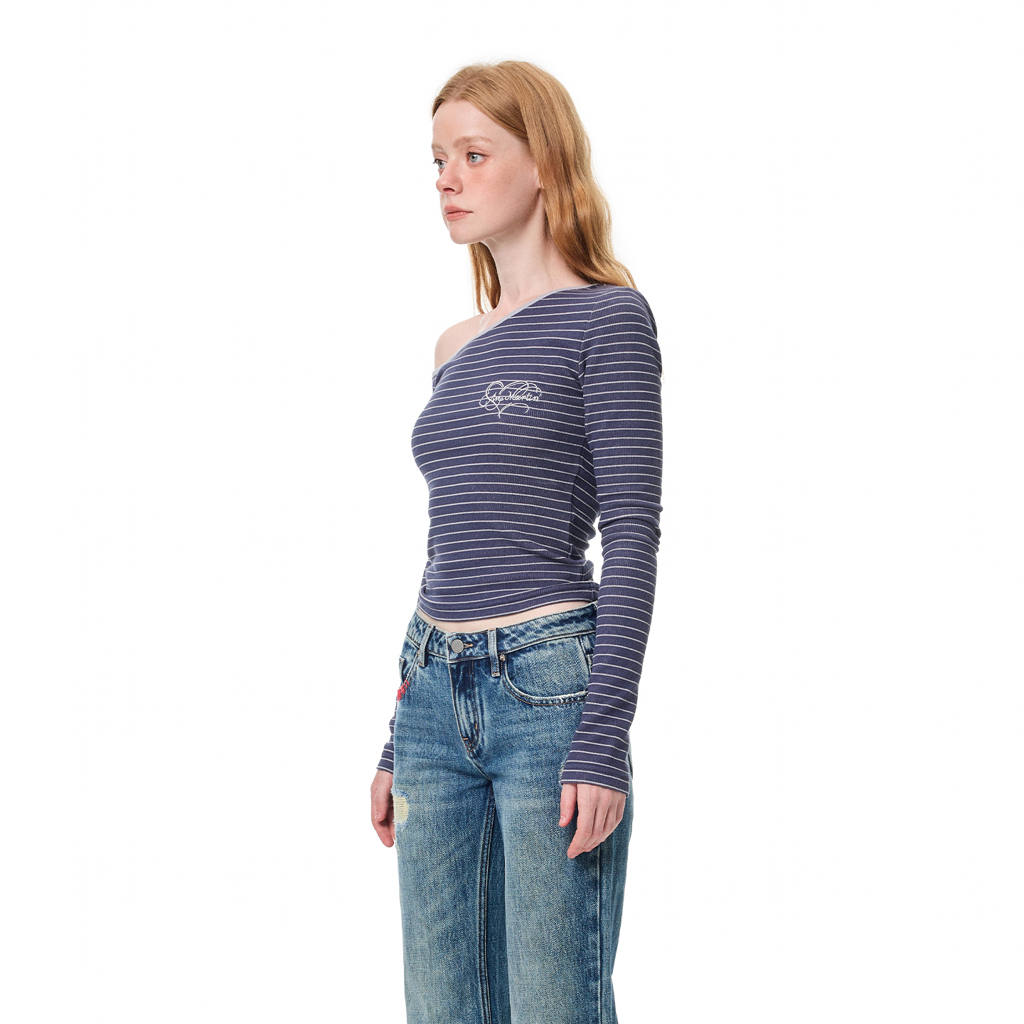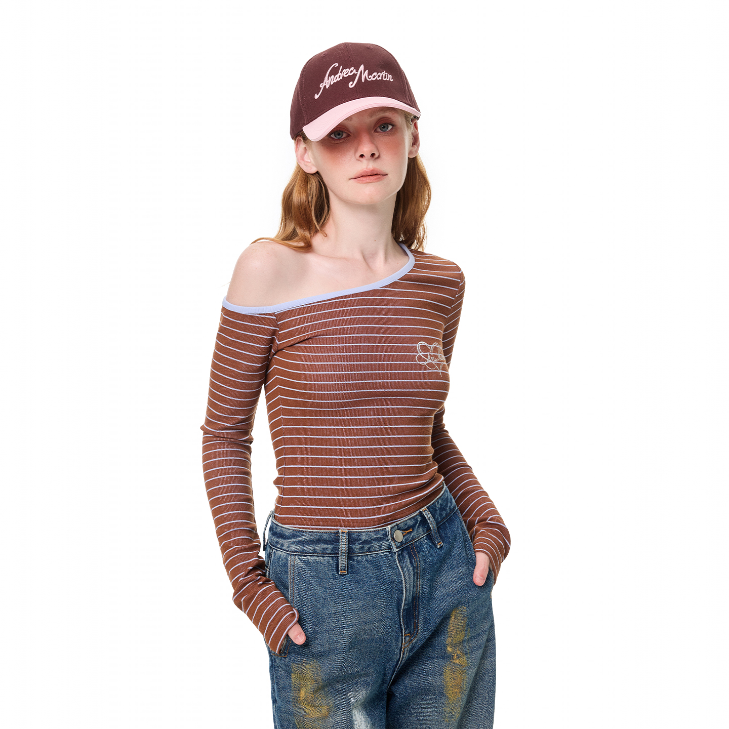 T恤女气质百搭短上衣 条纹斜肩刺绣修身 ANDREA MARTIN2025秋冬新品