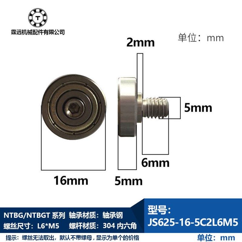 NTBG16 6外螺纹型轴承加杆625金属螺杆轴承导向门窗滑轮外径16厚5