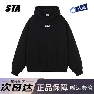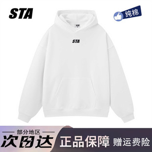 STA旗舰店基础小字母印花连帽卫衣男女美式 潮牌重磅纯棉灰色外套