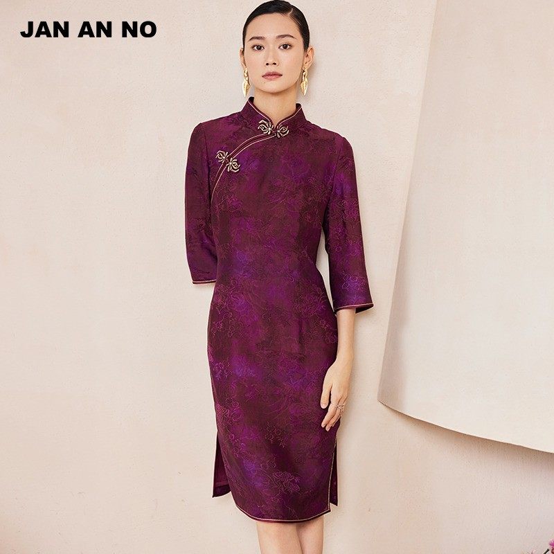 旗袍 温柔秋季 紫花落香 厚款 画报夫人原创自制新中式