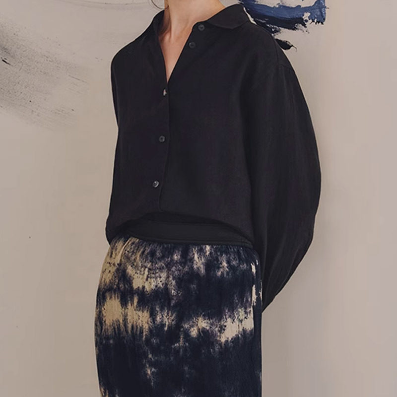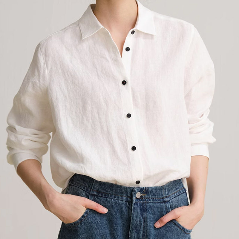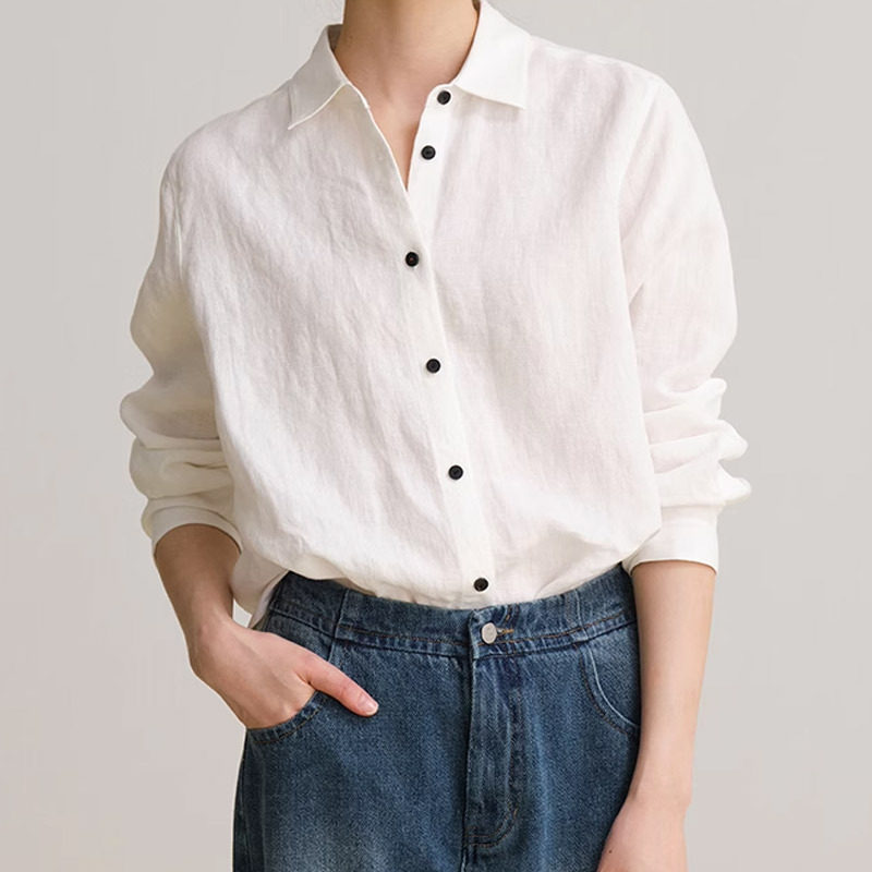 休闲百搭文艺衬衣女轻薄小衫 衬衫 上衣 28支精梳麻长袖 2026春秋新款