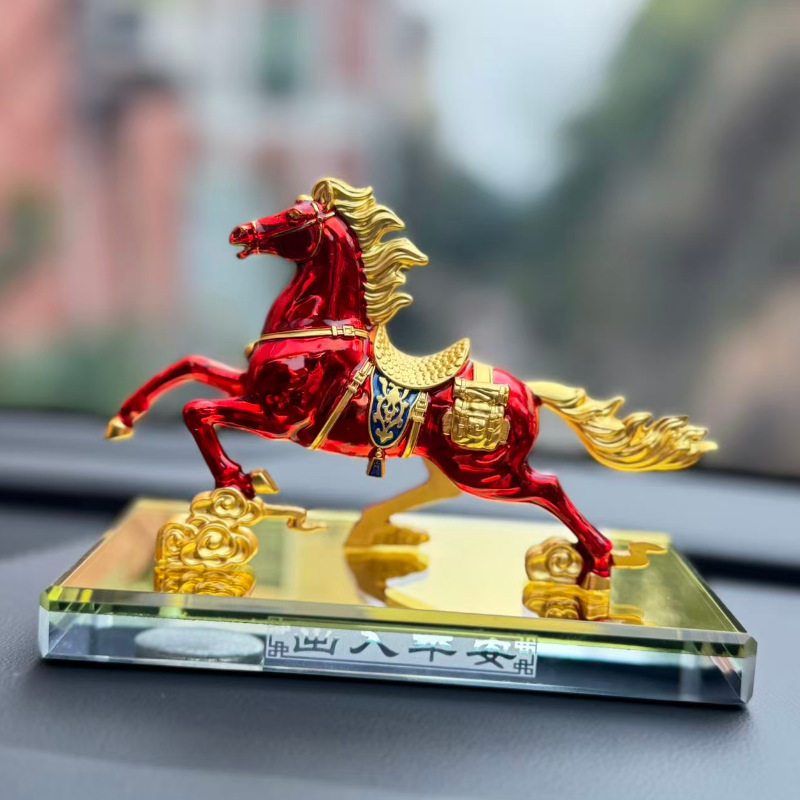 2026新款 创意马汽车摆件车内车挂车上中控台香水座锌合金出入平安