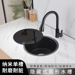 304不锈钢小米粒压纹圆形水槽洗菜盆单槽吧台岛台阳台小水池圆盆