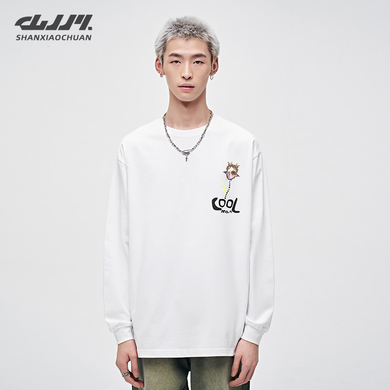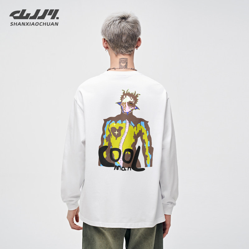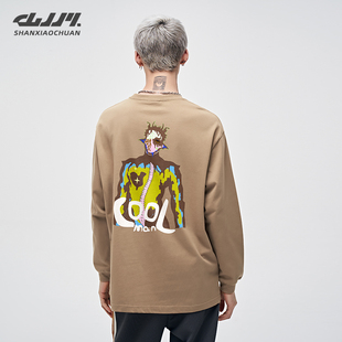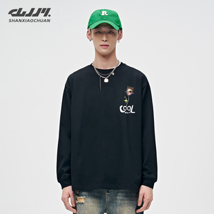 秋季 t恤男2025新款 纯棉嘻哈骷髅秋衣男上衣 长袖 山小川潮牌美式