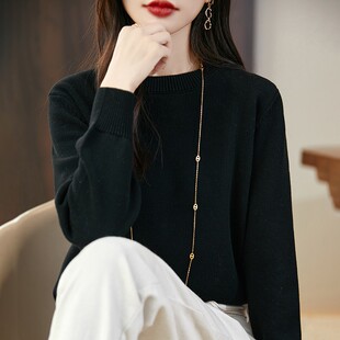 宽松内搭全棉线上衣 女圆领毛衣韩版 秋冬纯棉线加厚长袖 针织打底衫