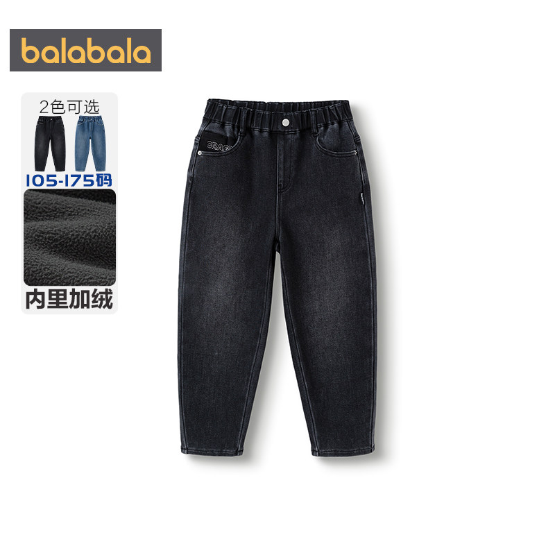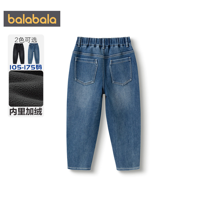 儿童萝卜裤 巴拉巴拉男童牛仔裤 童装 子秋冬新款 厚 中大童宝宝加绒裤