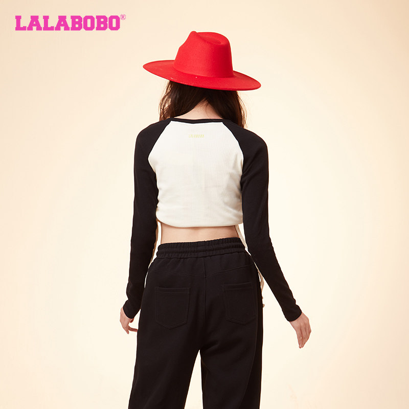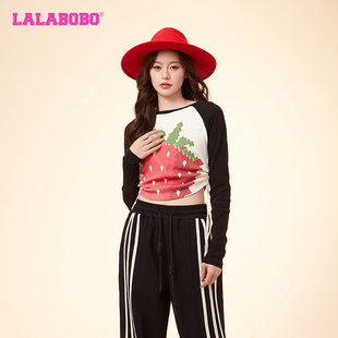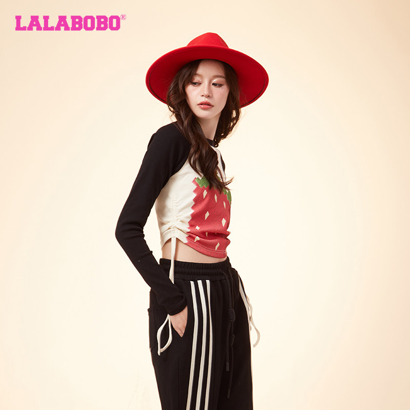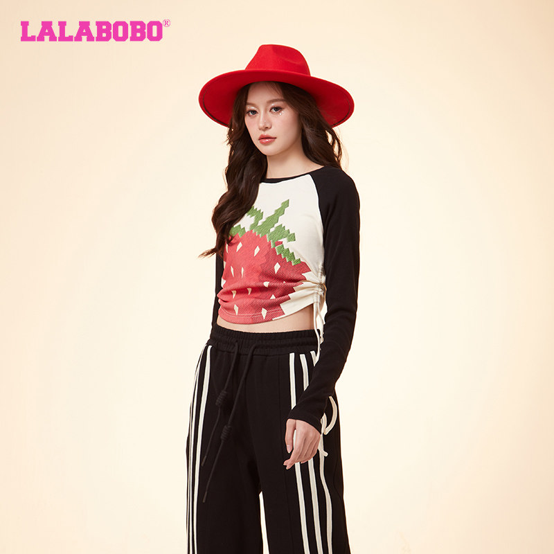 LBDA T恤女 WSDT29 水果撞色白色圆领套头长袖 LALABOBO24春夏新品