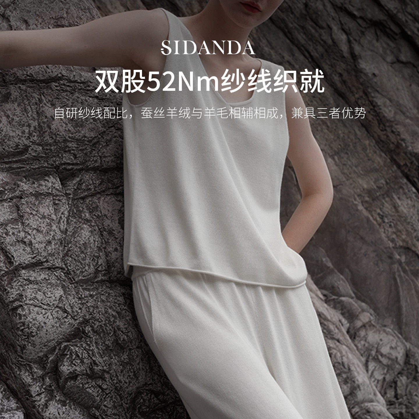 SIDANDA轻奢真丝羊绒家居服套装 可外穿休闲 6A桑蚕丝针织睡衣长裤