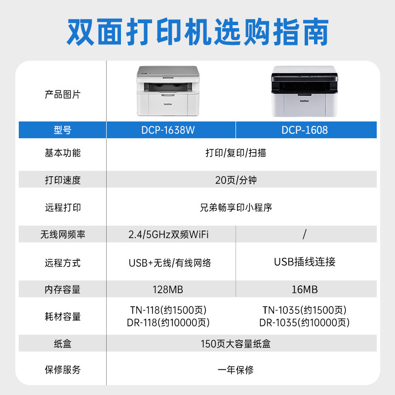 兄弟DCP L1638W激光打印机小型家用办公无线远程复印扫描多功能