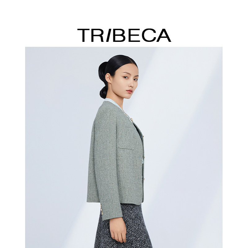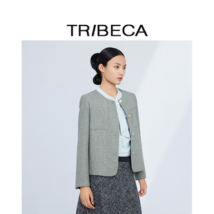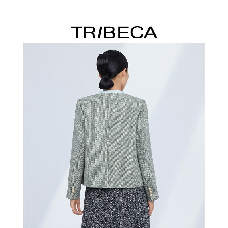 女圆领短款 TRIBECA 绿色法式 商场同款 小香风外套 翠贝卡2024秋新款