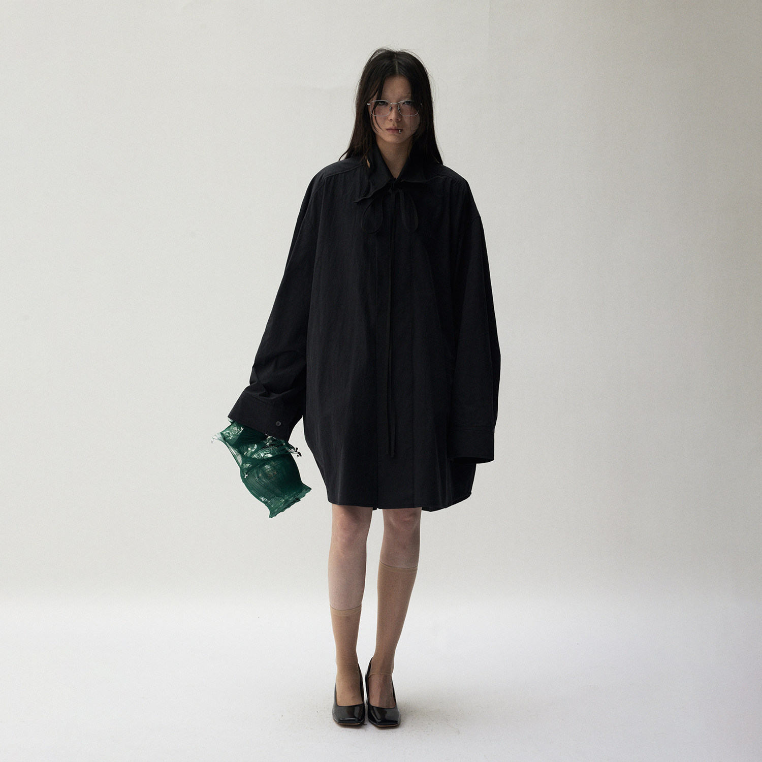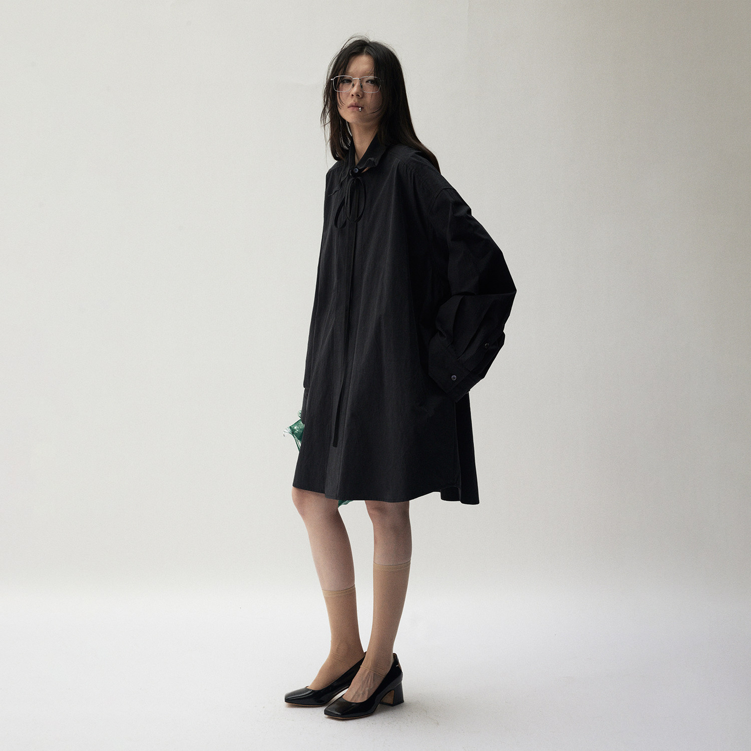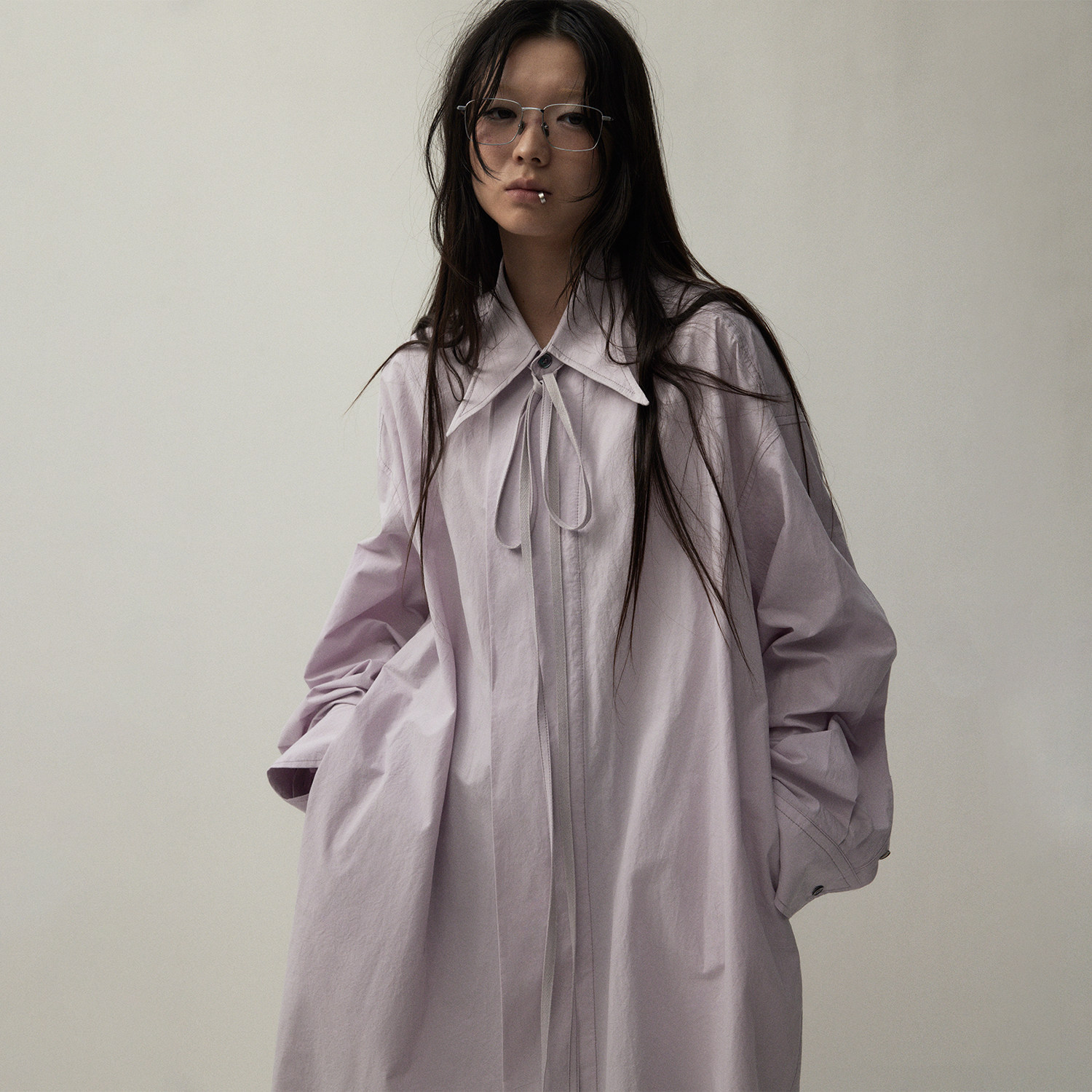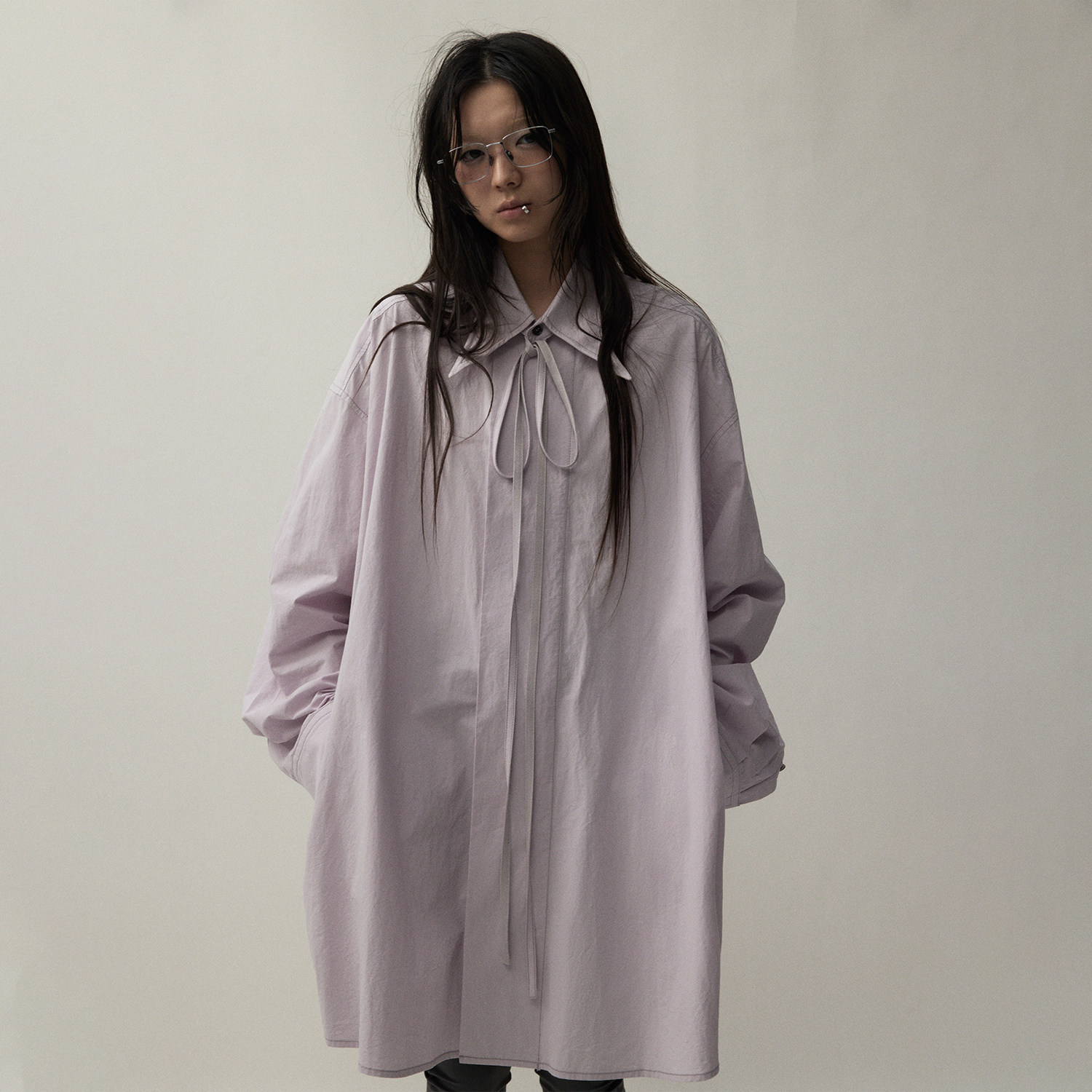 灰紫色衬衫 VERMO oversized宽袖 肌理感水洗棉 可拆卸自由塑形领