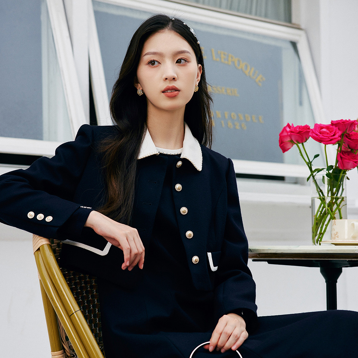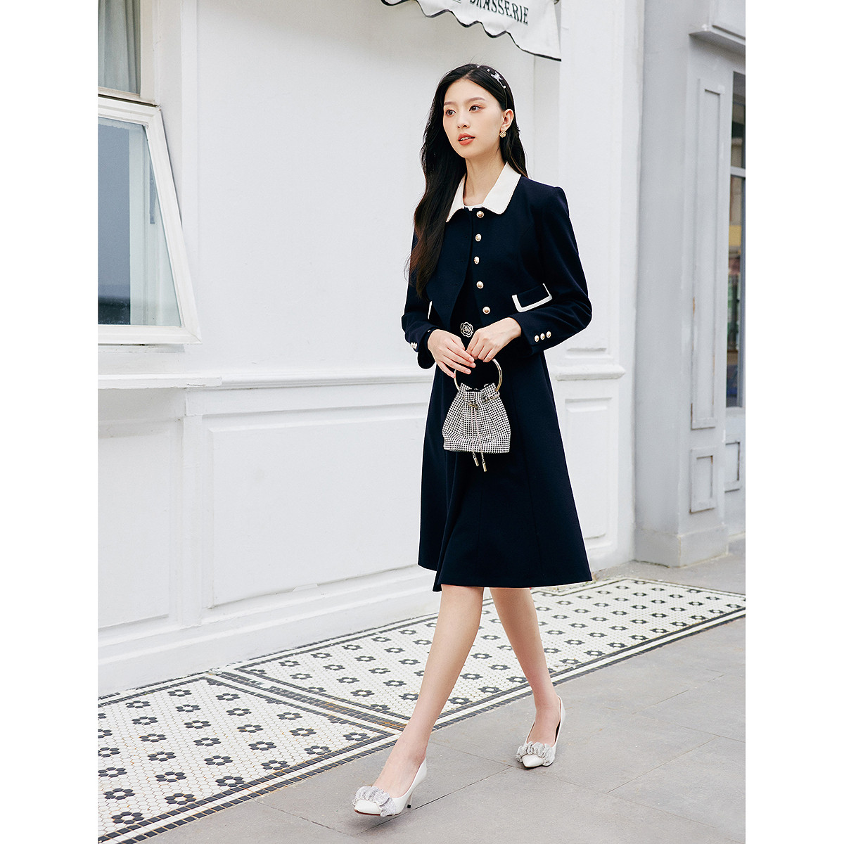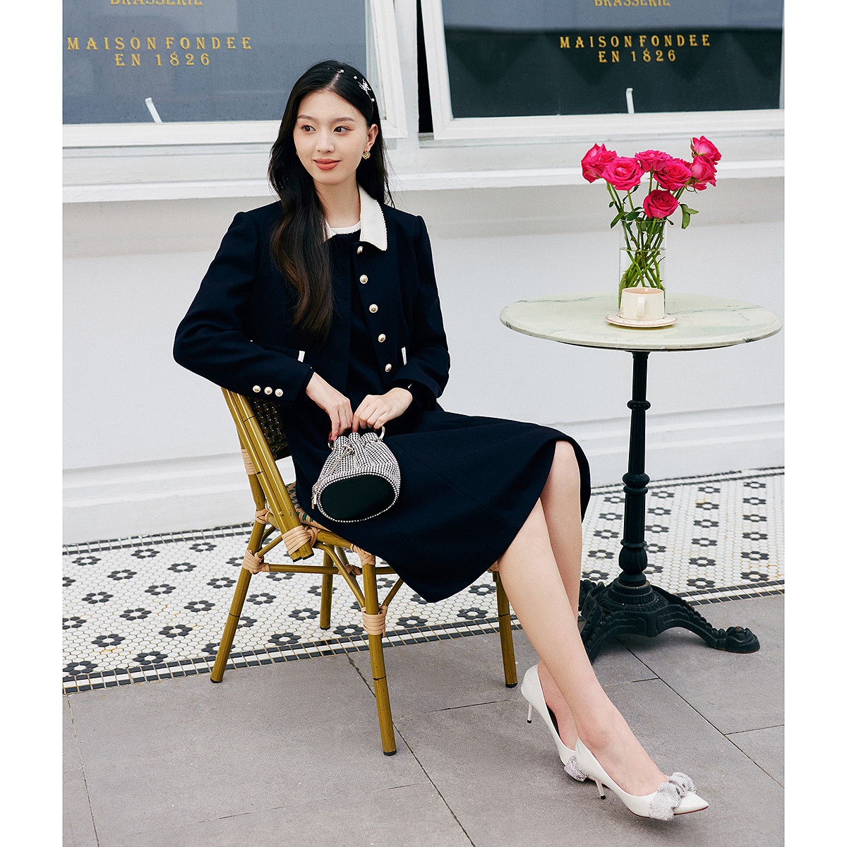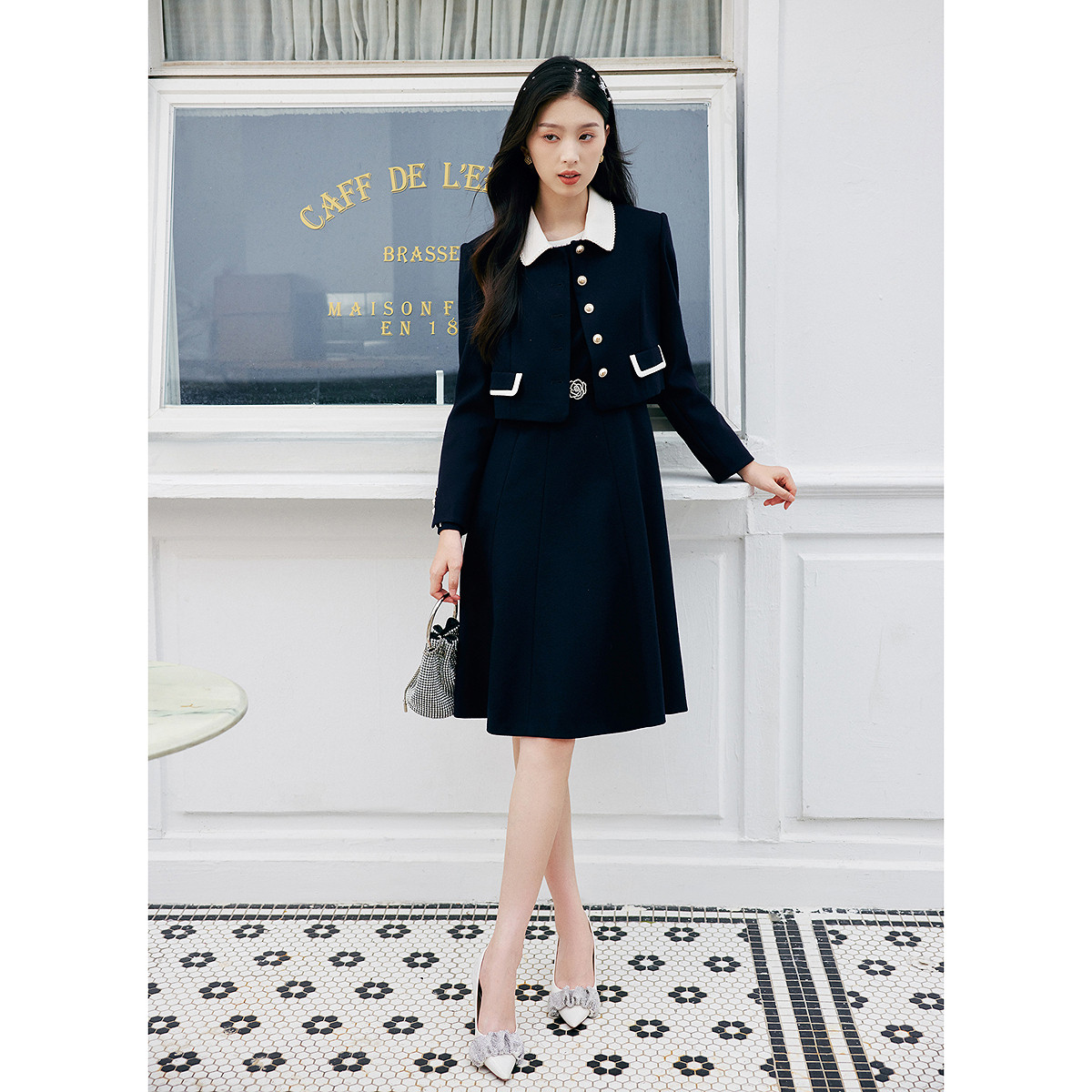 秋季 珂莱蒂尔商场同款 精致香风连衣裙两件套裙子女 100绵羊毛