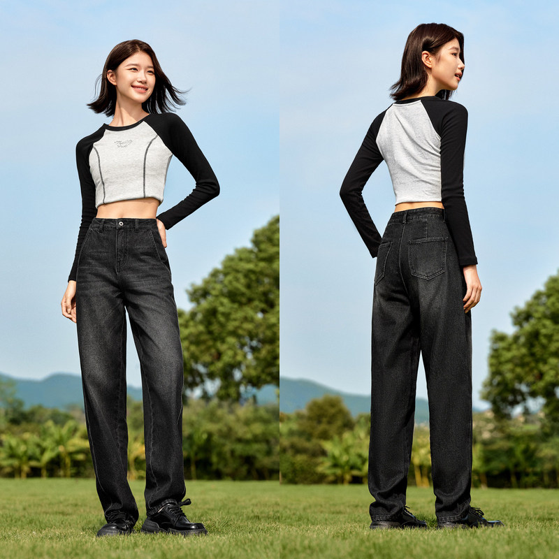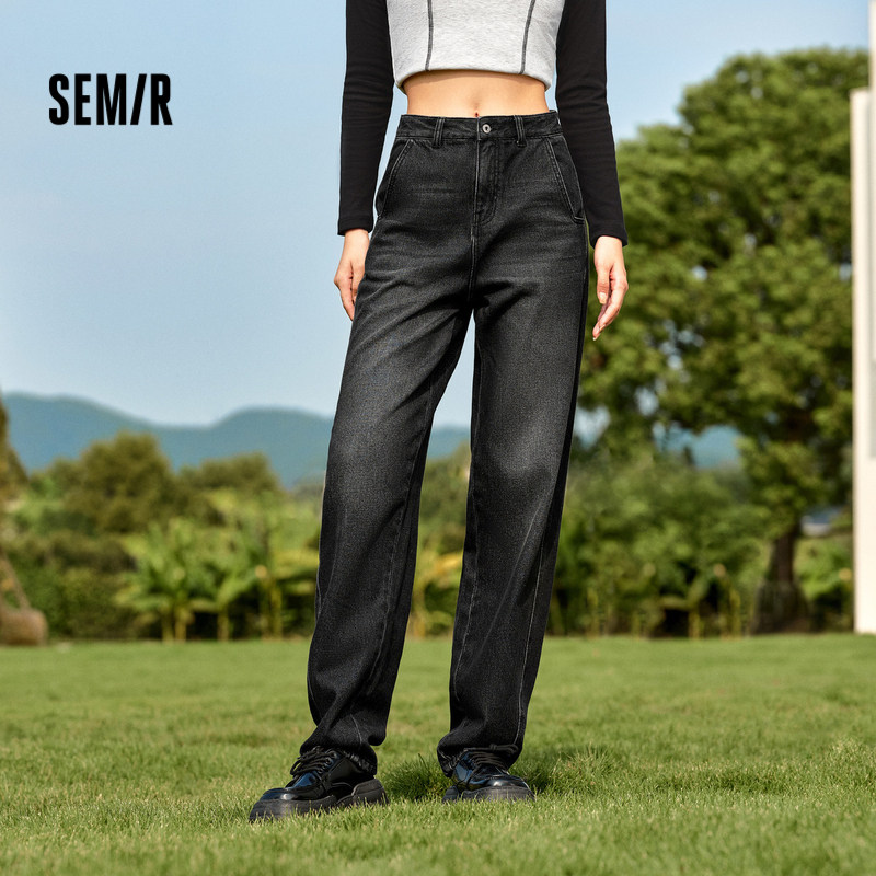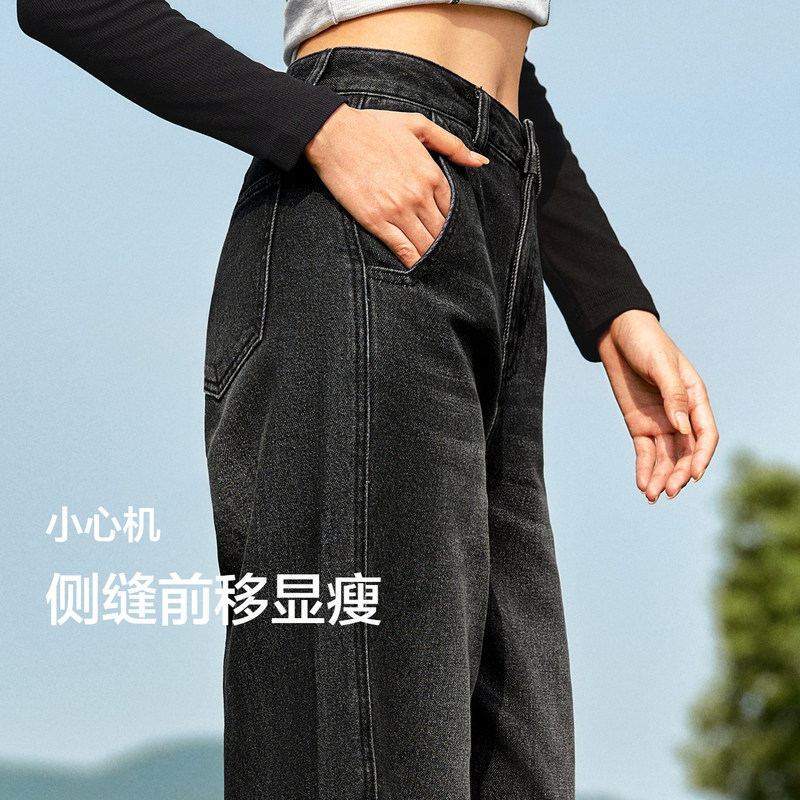 清仓潮流宽松锥形裤 森马牛仔裤 反季 舒适复古风冬季 显瘦 女抓毛长裤