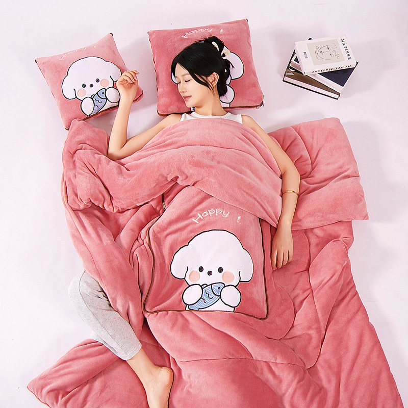 新款 加厚抱枕被子两用午睡办公汽车载靠垫珊瑚绒毯子空调被二合一