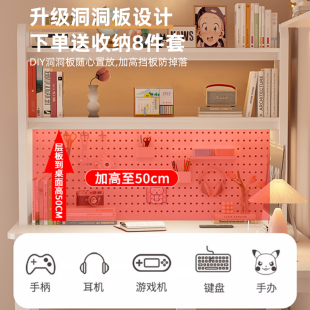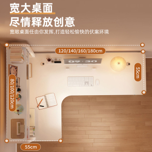 奶油风转角书桌学生家用学习桌书架一体台式 拐角洞洞板办公电脑桌