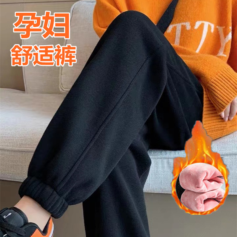 孕妇装 加绒加厚保暖休闲托腹小脚长裤 春秋冬外穿打底裤 孕妇运动裤