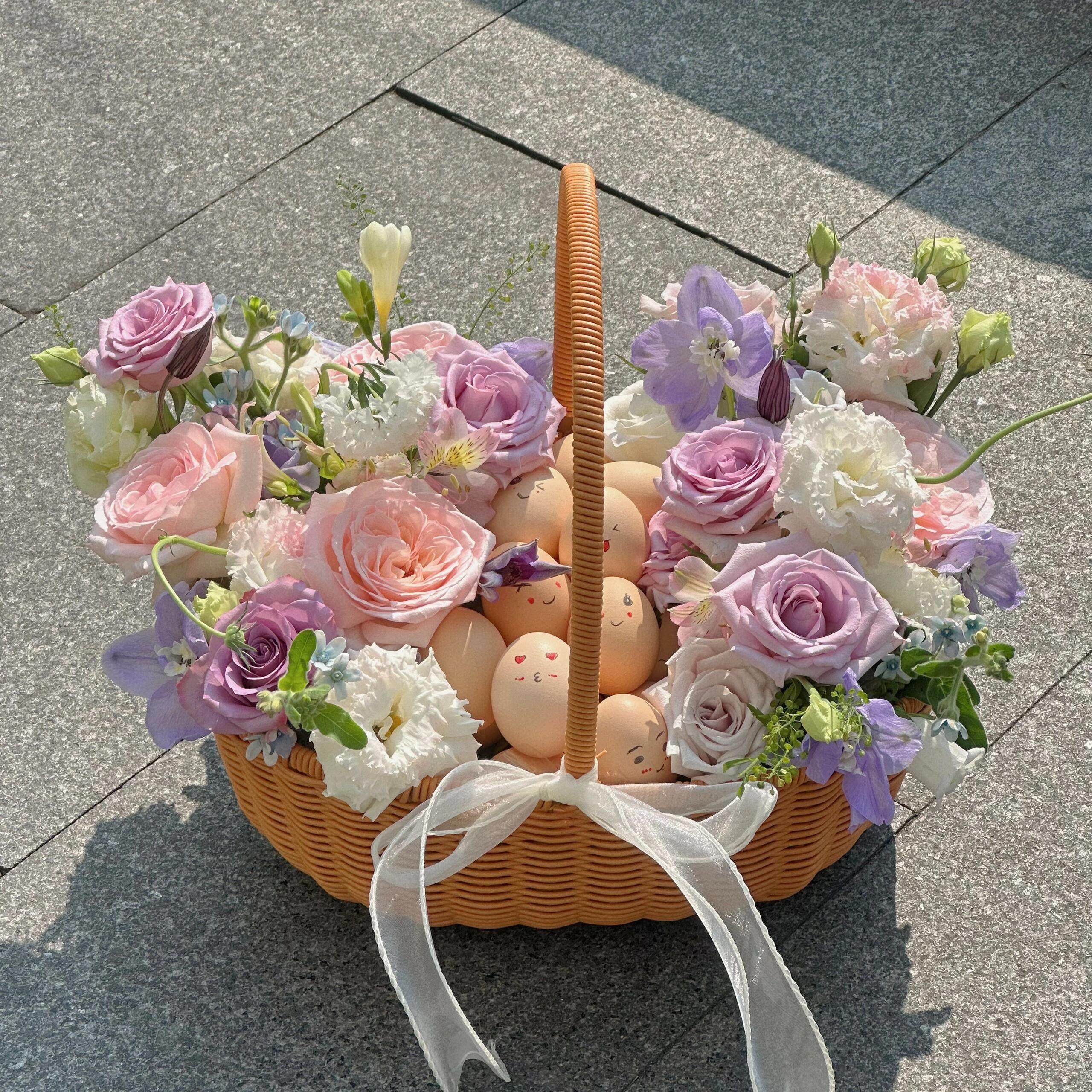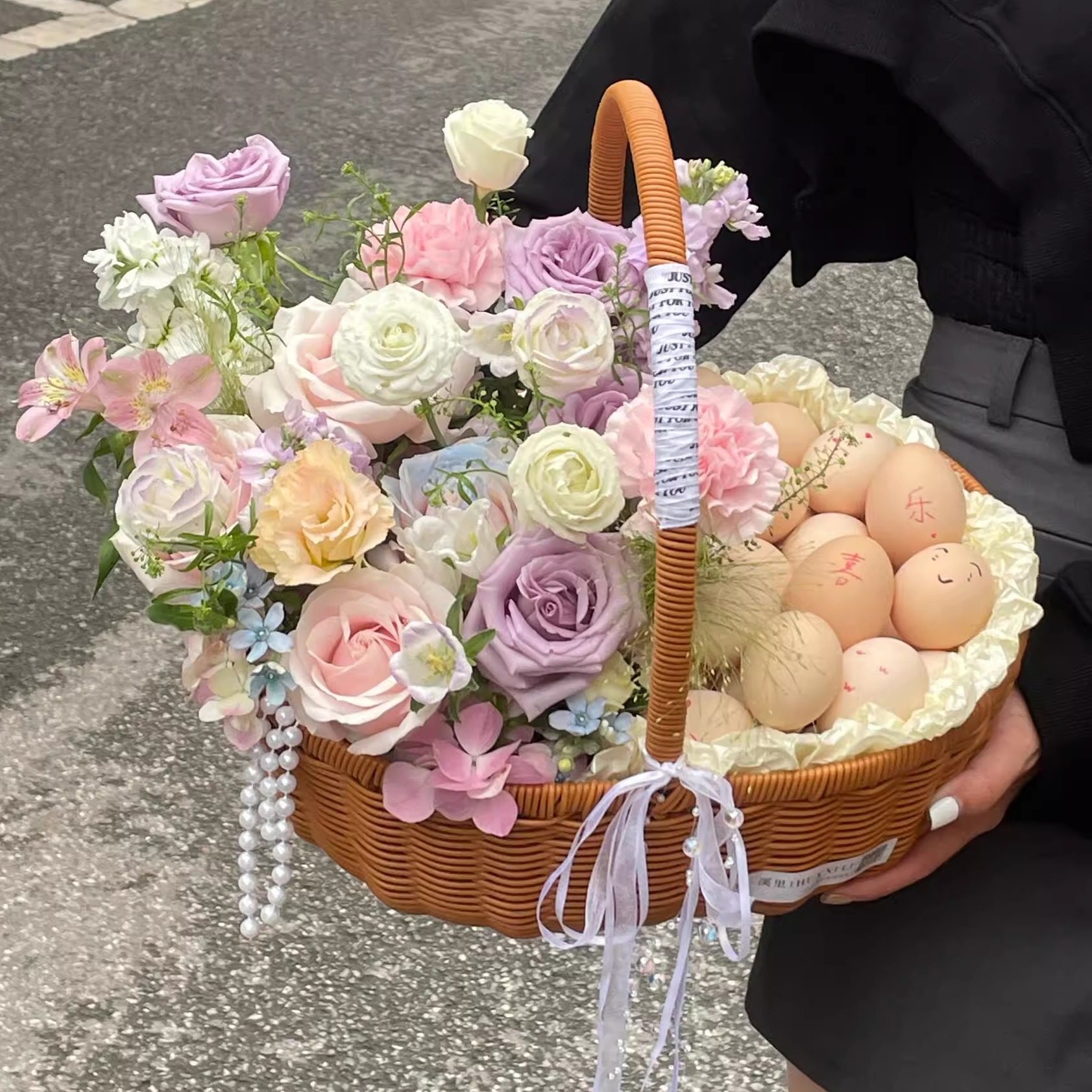 手提花篮手工编织花束鲜花藤编儿童小篮子月子鸡蛋开业花篮竹编
