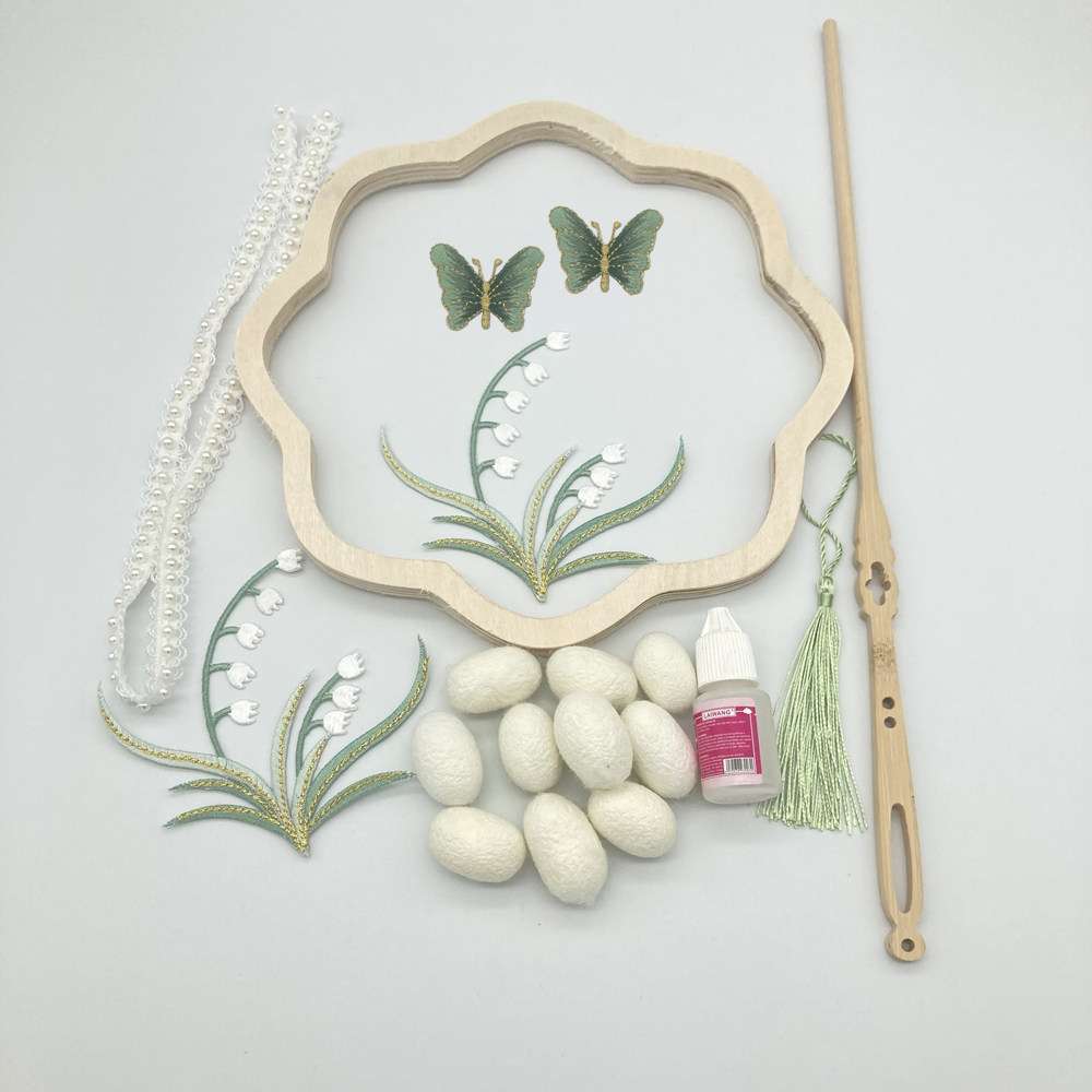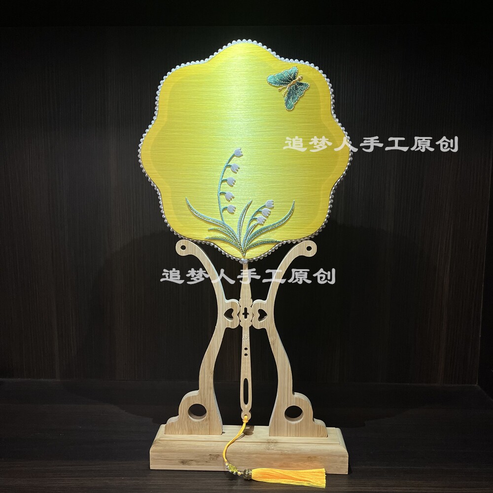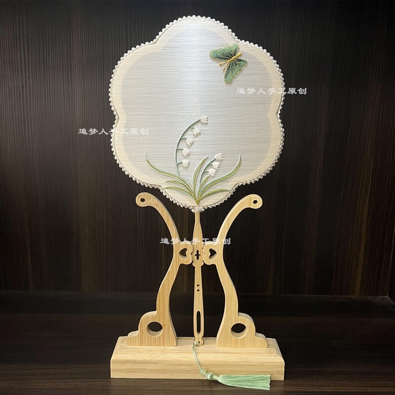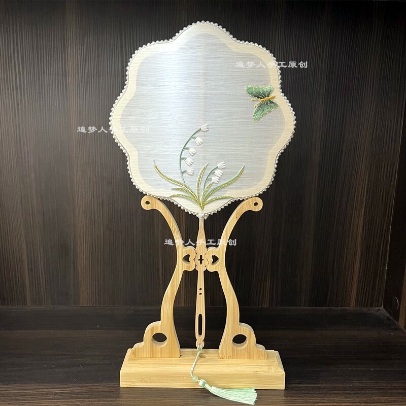 蚕丝扇diy材料半成品木制团扇架框小清新文艺刺绣配饰包铃兰蝴蝶