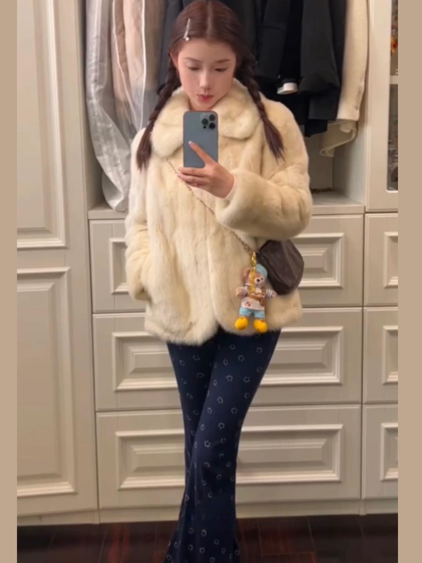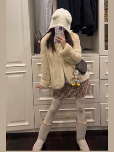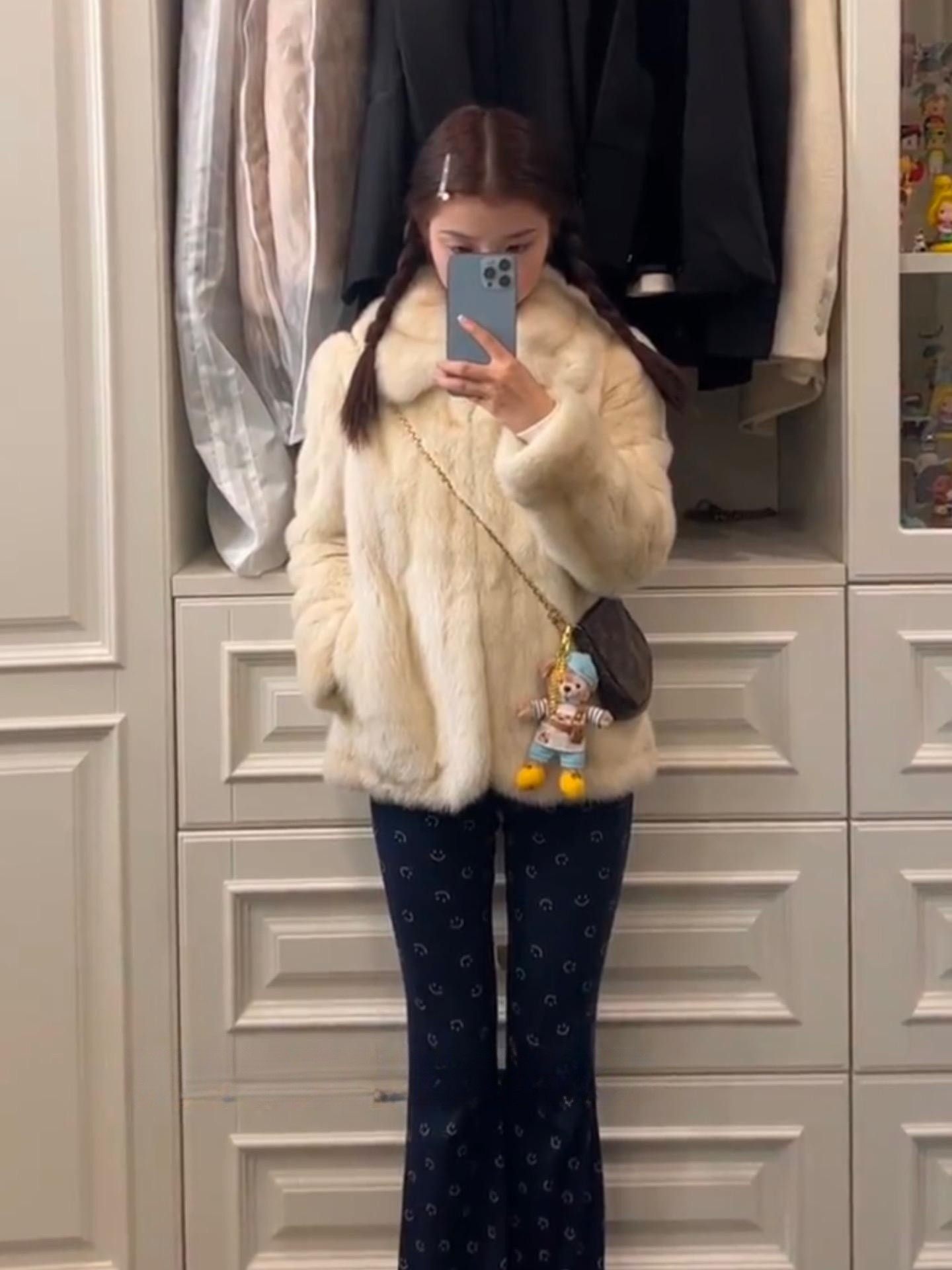 新品 千金公主兔皮草外套女真兔毛整皮毛一体韩系立领极简短款 冬季