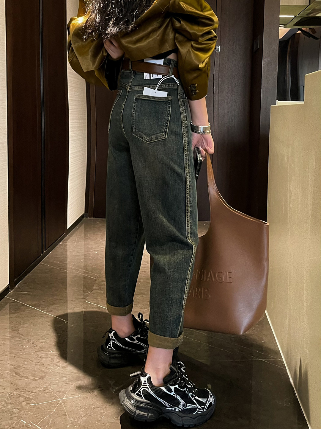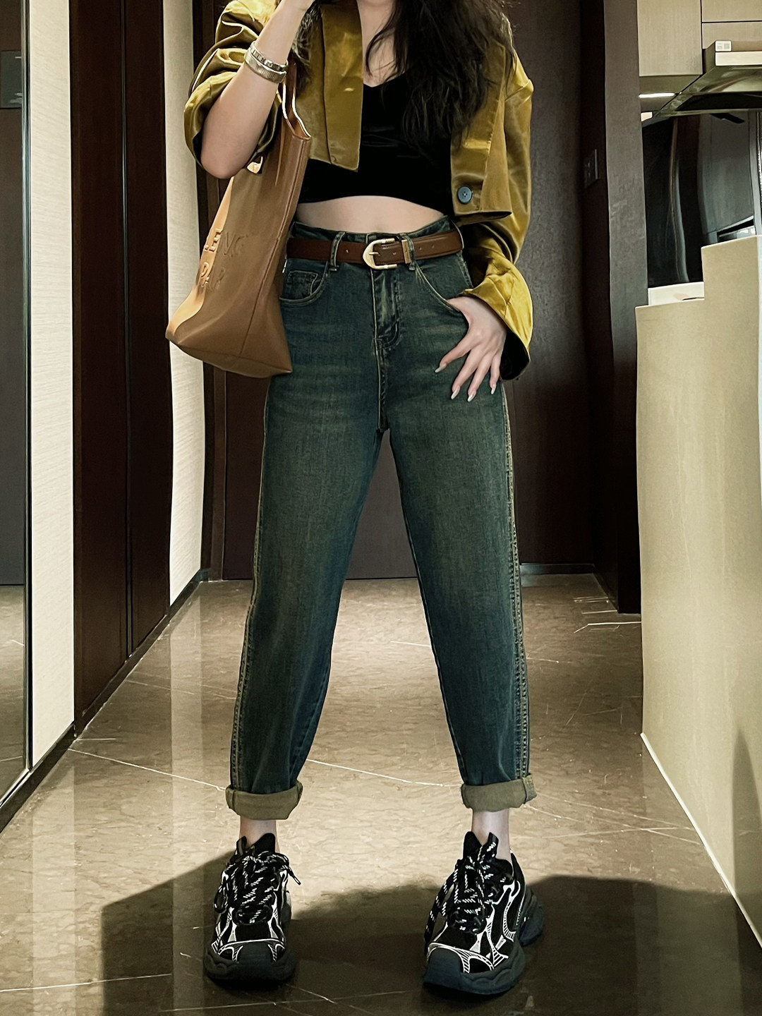 显瘦哈伦垮裤 欧货秋季 女宽松高腰大码 怀旧复古蓝色牛仔萝卜裤 新款