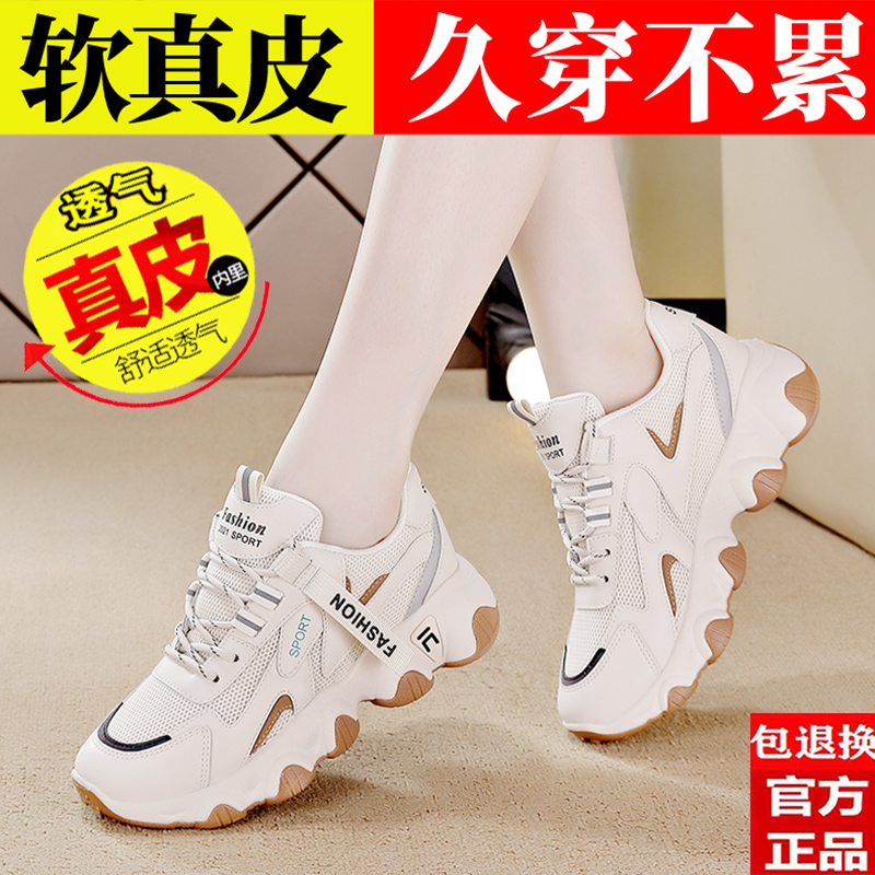 女2025春夏季 真皮运动鞋 新款 女鞋 品牌断码 百搭透气休闲老爹鞋 特价