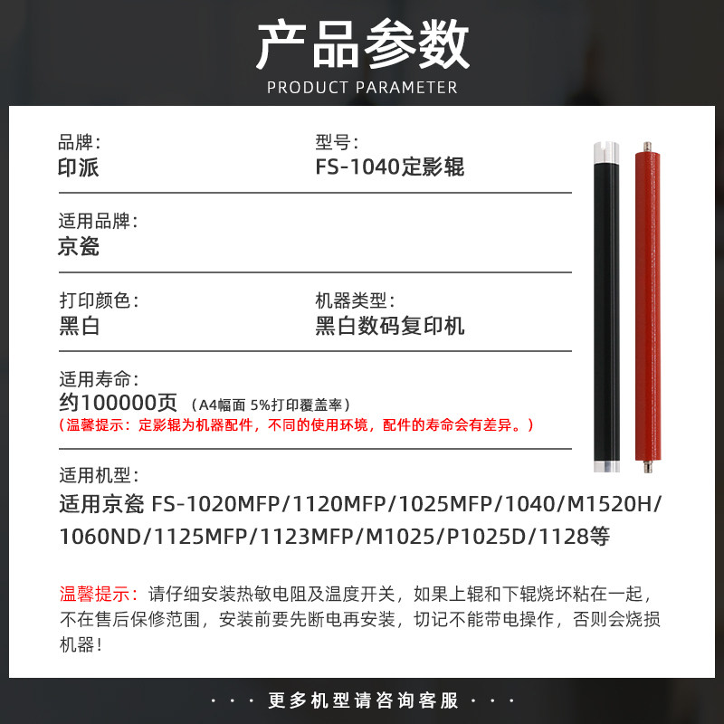 1060ND1120MFP 1025 1125 适用京瓷FS M1025打印机P1025D压力辊 M1520H 1123 下棍 1020MFP定影下辊1040