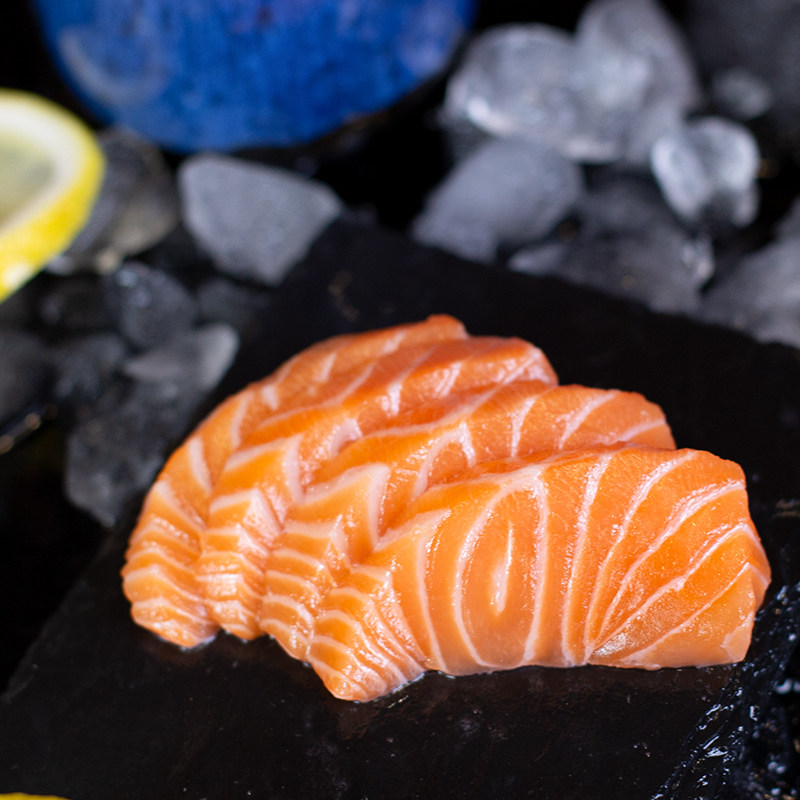 进口挪威冰鲜三文鱼中段刺身大西洋鲑生鱼片送芥末酱油当天现切