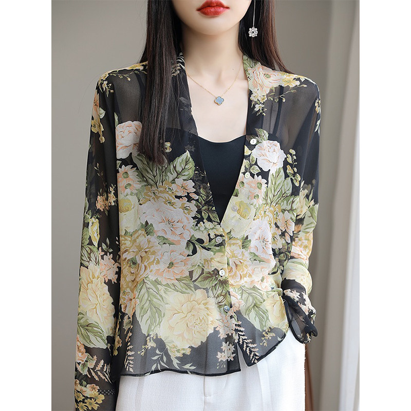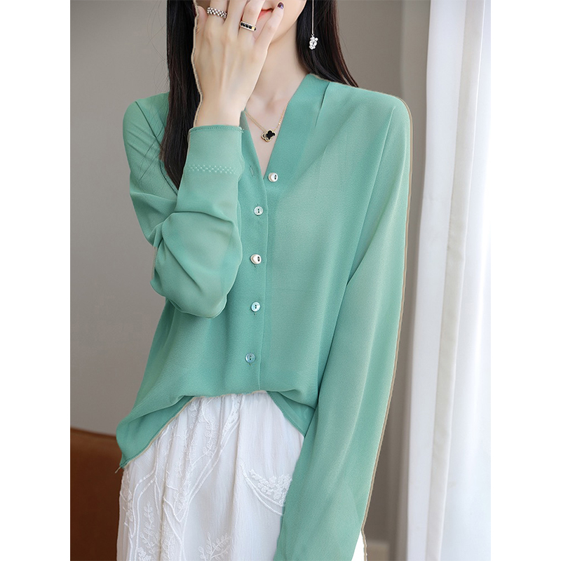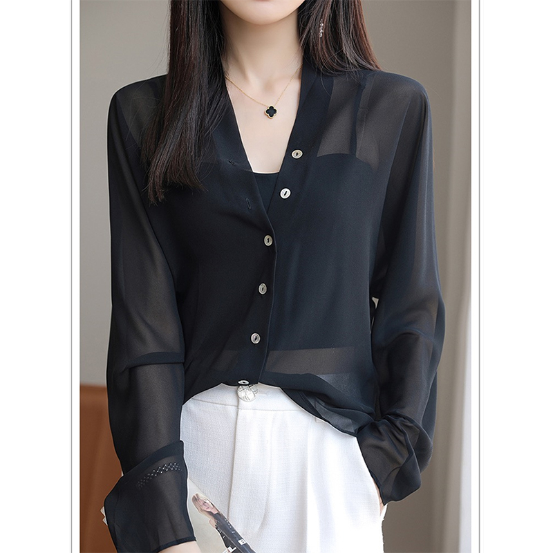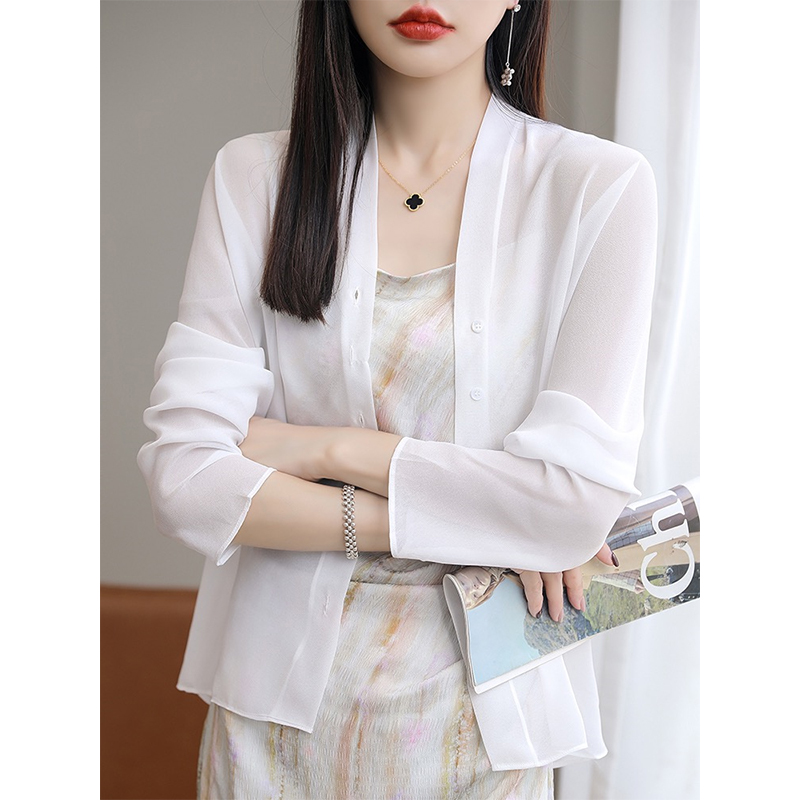 纸片人既视感 乔其纱衬衫 夏天而生 防晒衫 桑蚕丝开衫 撤柜高货