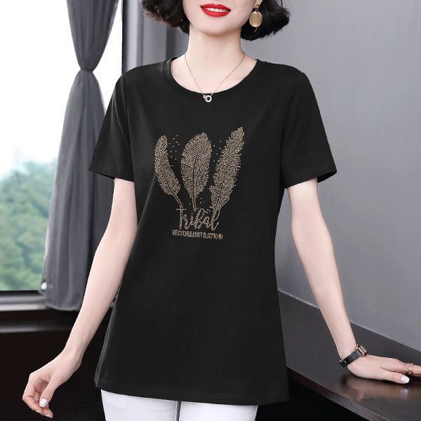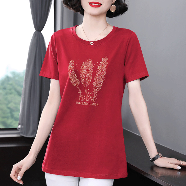 短袖 女士宽松半袖 t恤女上衣大码 中年妈妈夏装 2025新款 中长款
