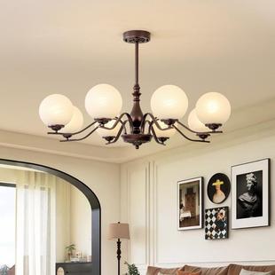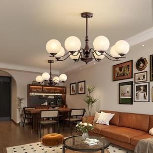 复古风卧室灯胡桃木色餐厅灯具 客厅灯吊灯魔豆美式 法式 中古风新款