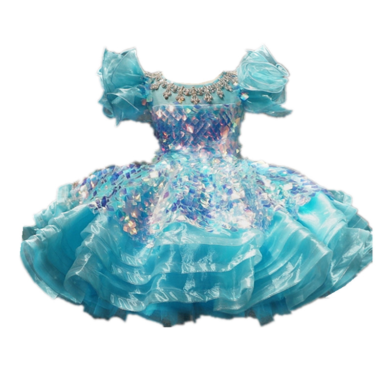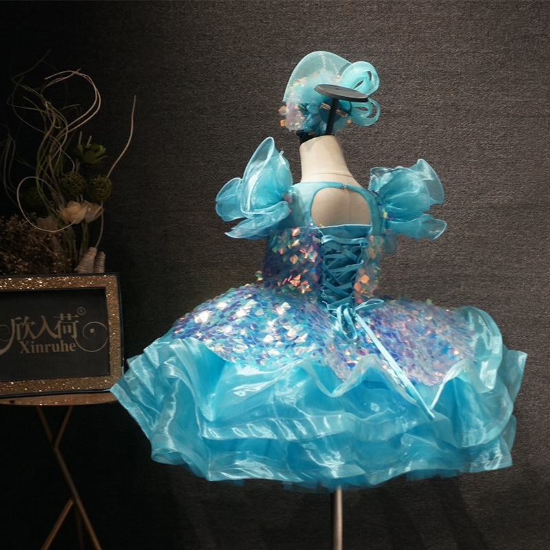 礼服 花童走秀主持表演演出服新款 儿童礼服蓝色短款 公主裙女童时尚