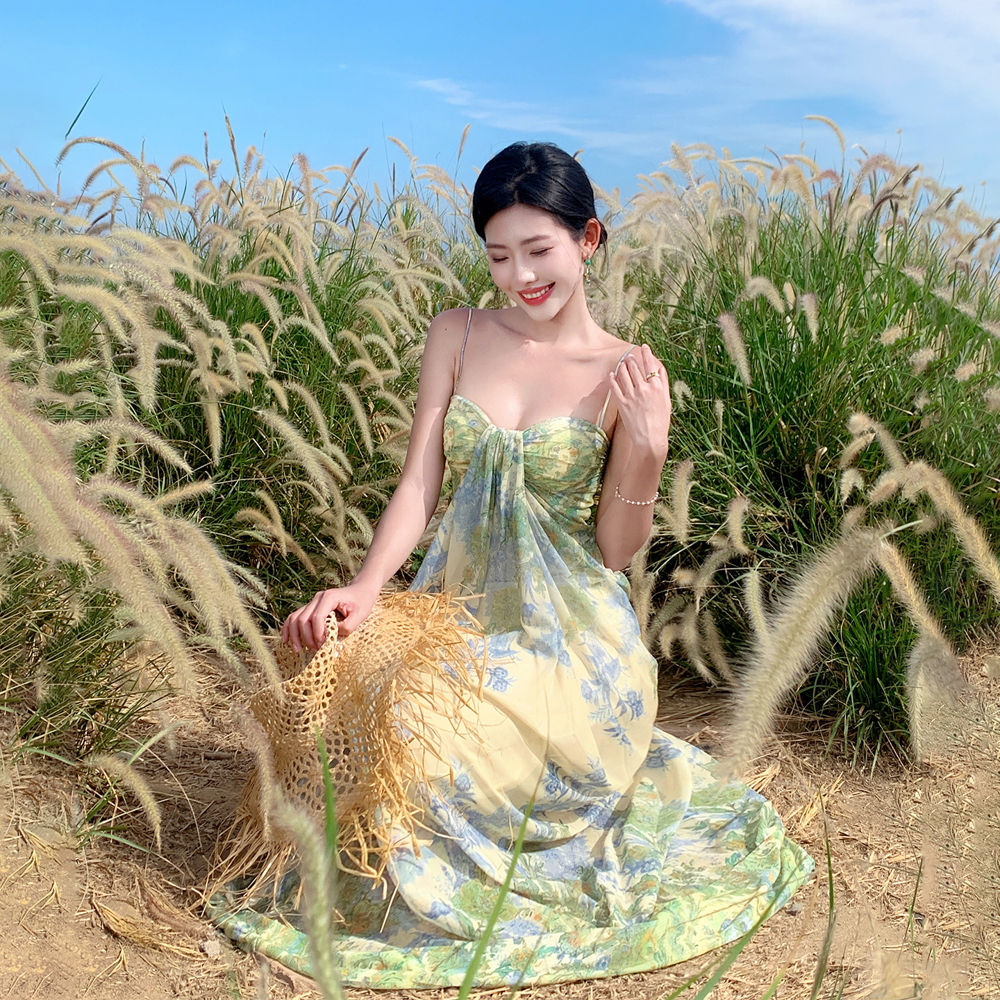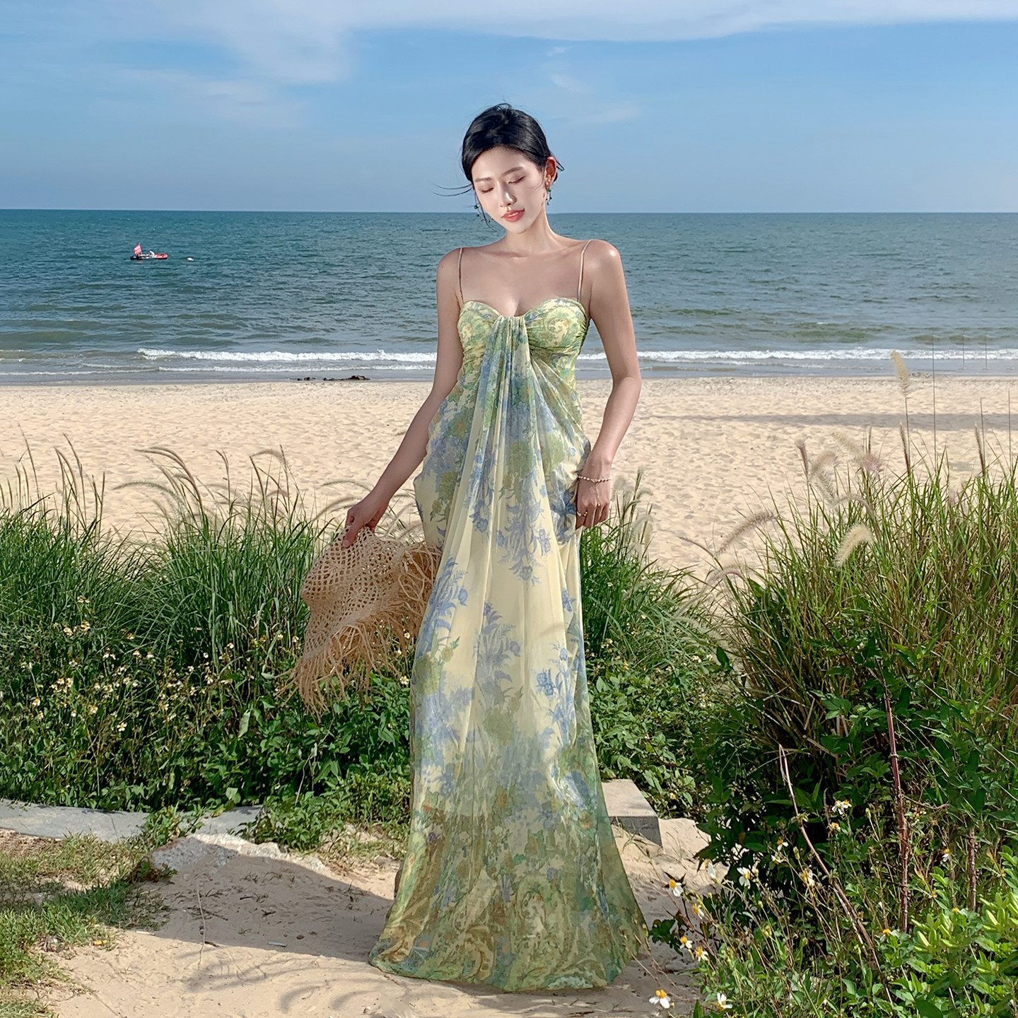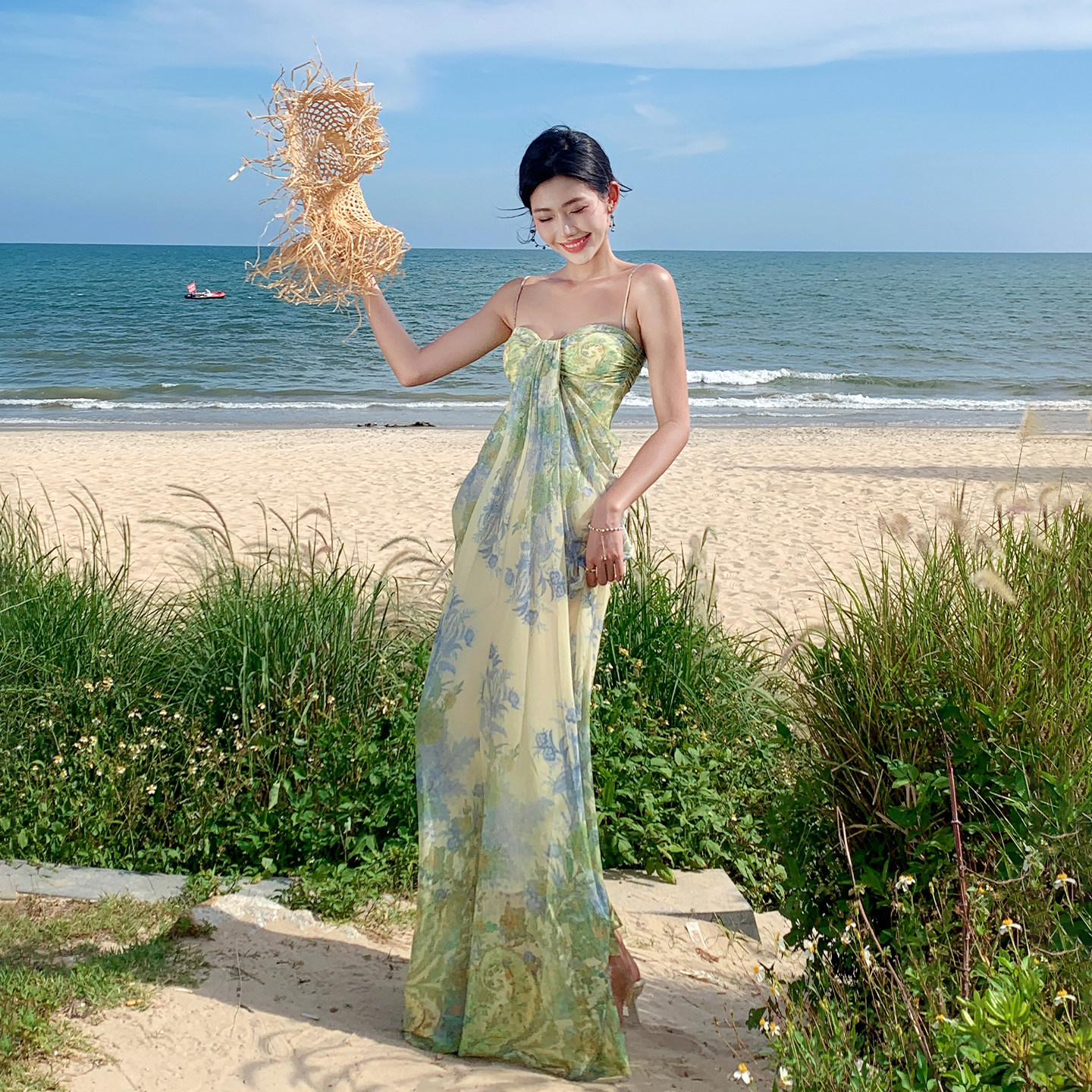 波西米亚泰式 绿色 沙滩裙裙连衣裙海边绝美女度假旅游吊带长裙女装
