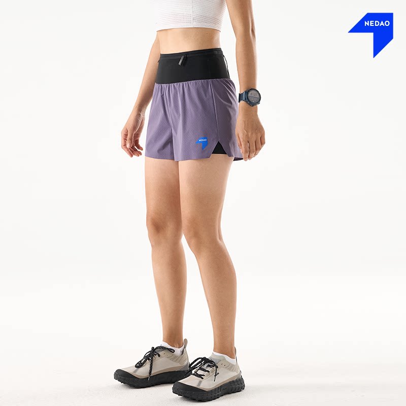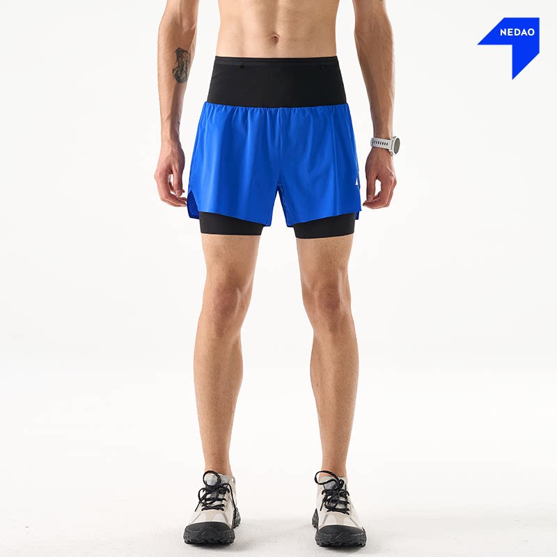 腰包透气男女专业马拉松越野短裤 新品 内道三合一收纳跑步短裤