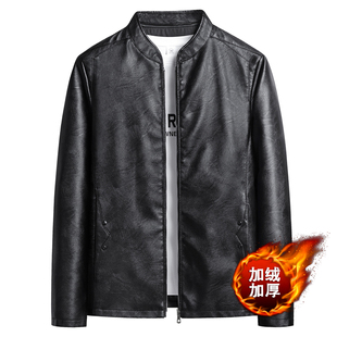 胖男生宽松休闲大码 郑一爱穿搭 复古立领秋季 先生 皮衣夹克 时尚
