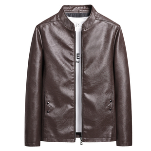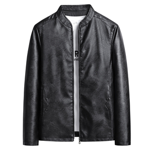 休闲帅气PU皮夹克男 宽松立领皮衣外套男春季 美式 复古短款