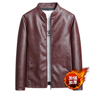皮夹克外套 冬季 海宁中老年皮衣加厚大码 宽松皮毛一体爸爸加绒男士
