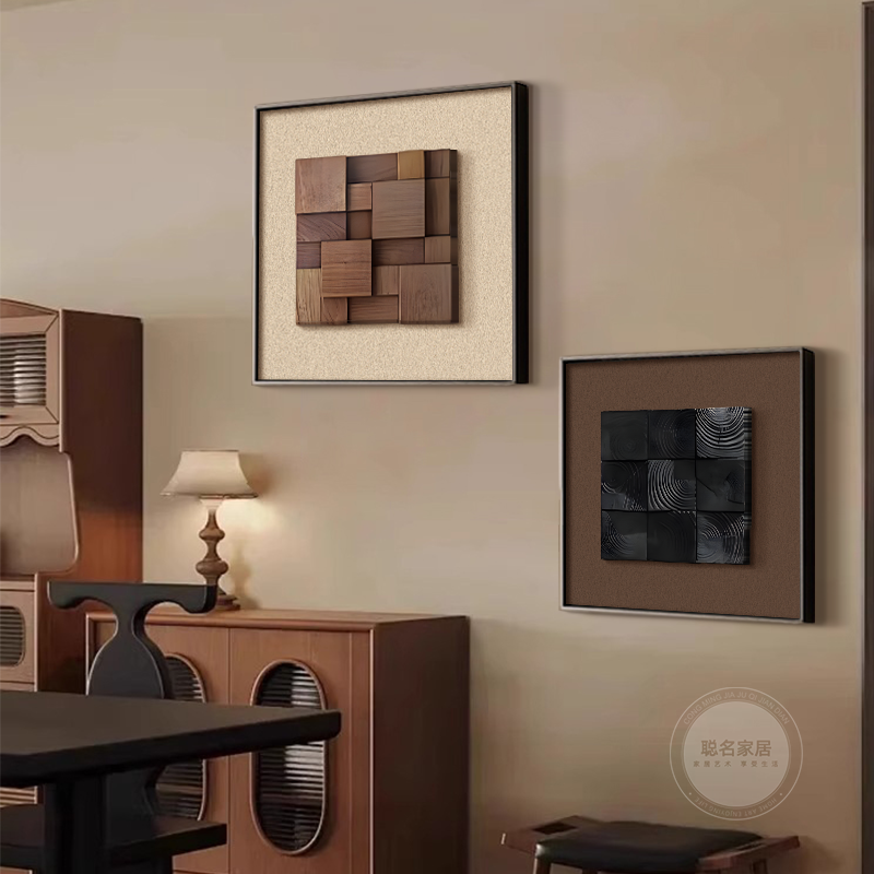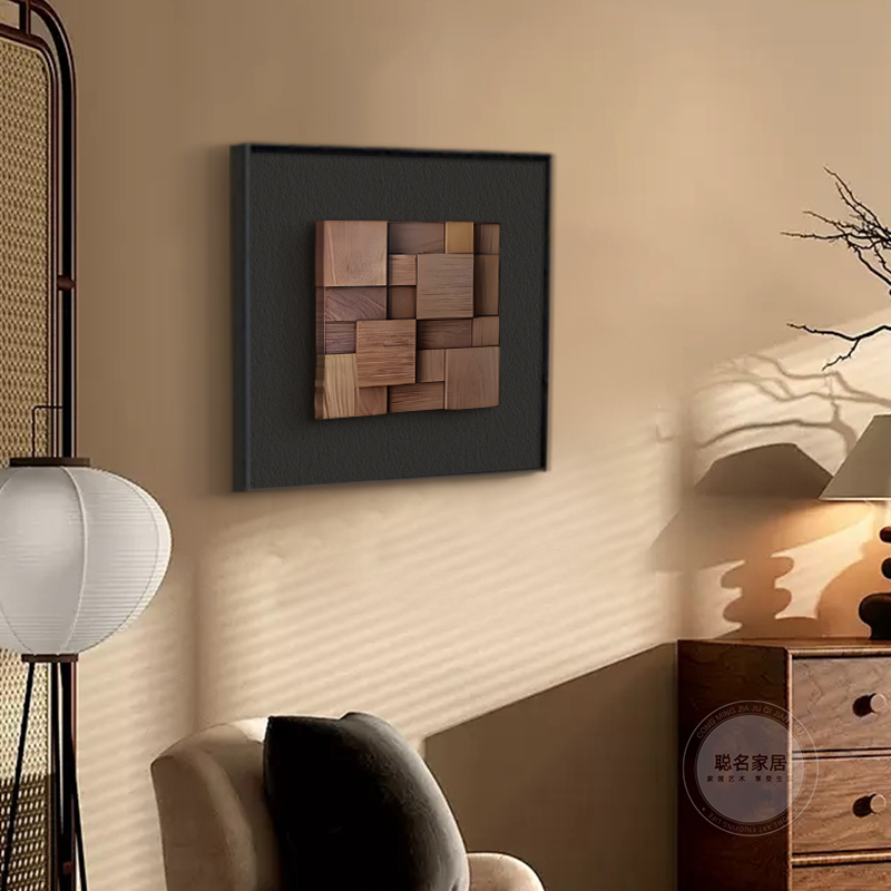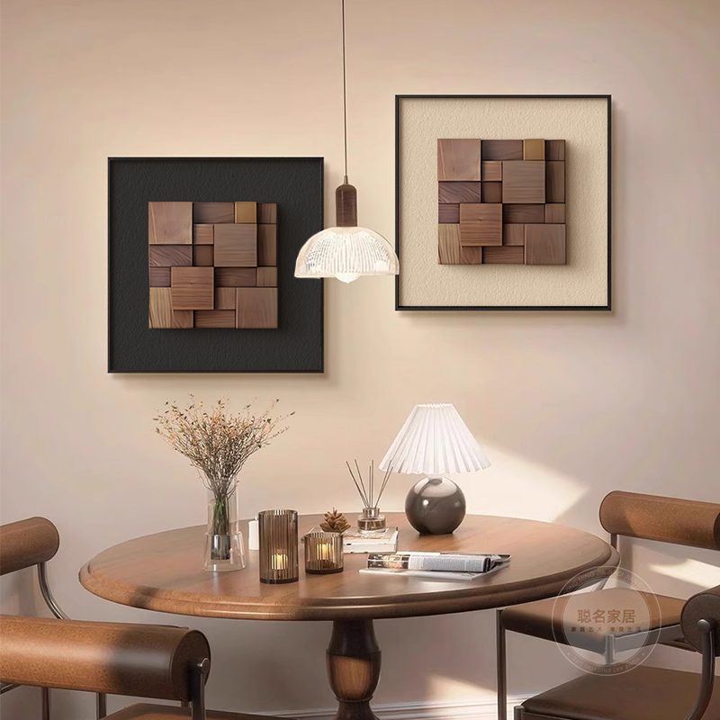 真胡桃木立体实木意式 饰画高级感玄关客厅玄关挂画桌面摆画 极简装
