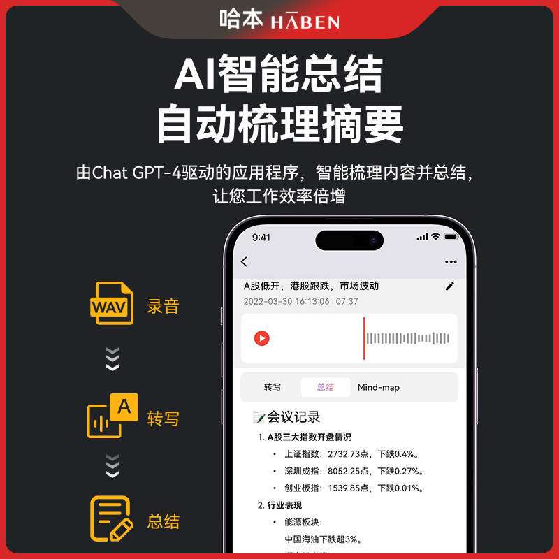 哈本AI卡片智慧录音笔转文字会议记录手机通话录音plaud note替代