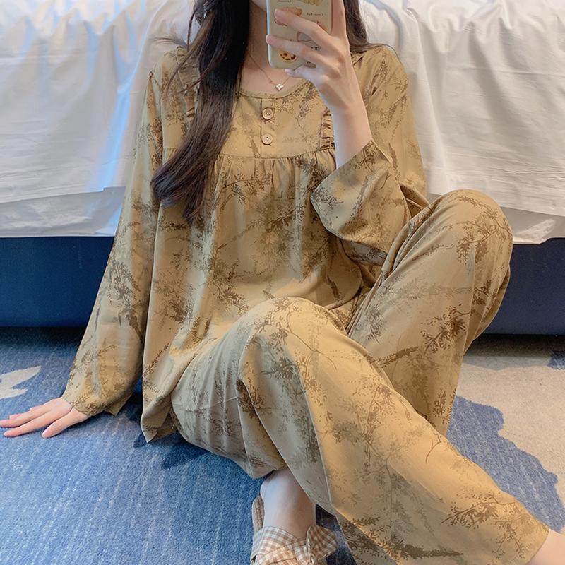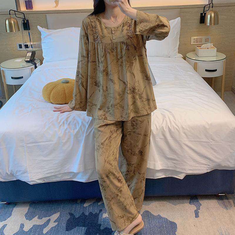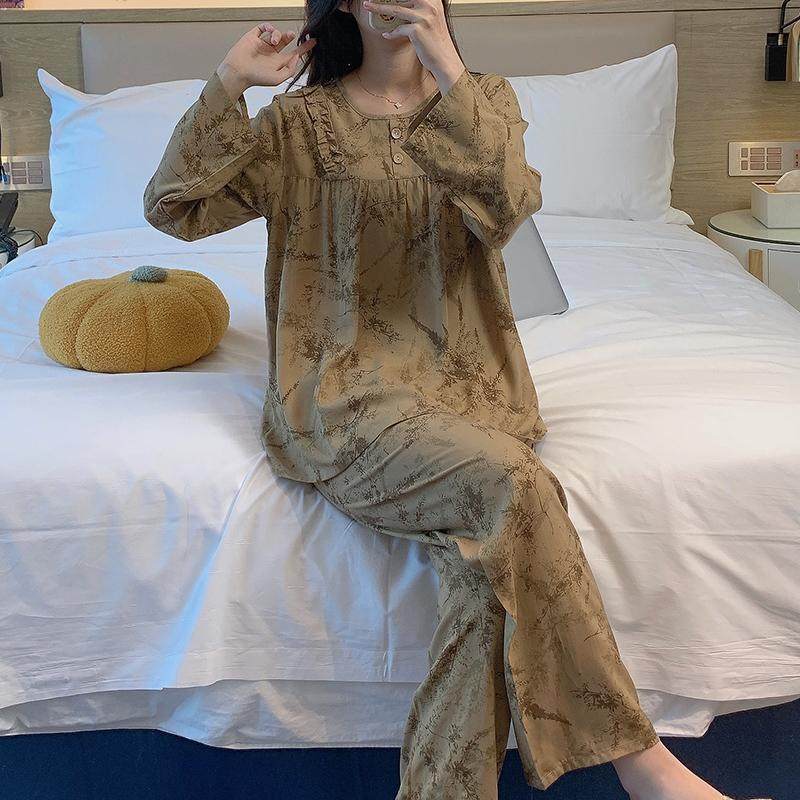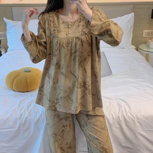 纯棉长袖 高级感大码 开衫 套装 春秋夏家居服 长裤 简约休闲睡衣女韩版