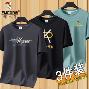 新款 T恤夏季 宽松大码 休闲印花半袖 潮流 啄木鸟男士 打底衫 圆领短袖